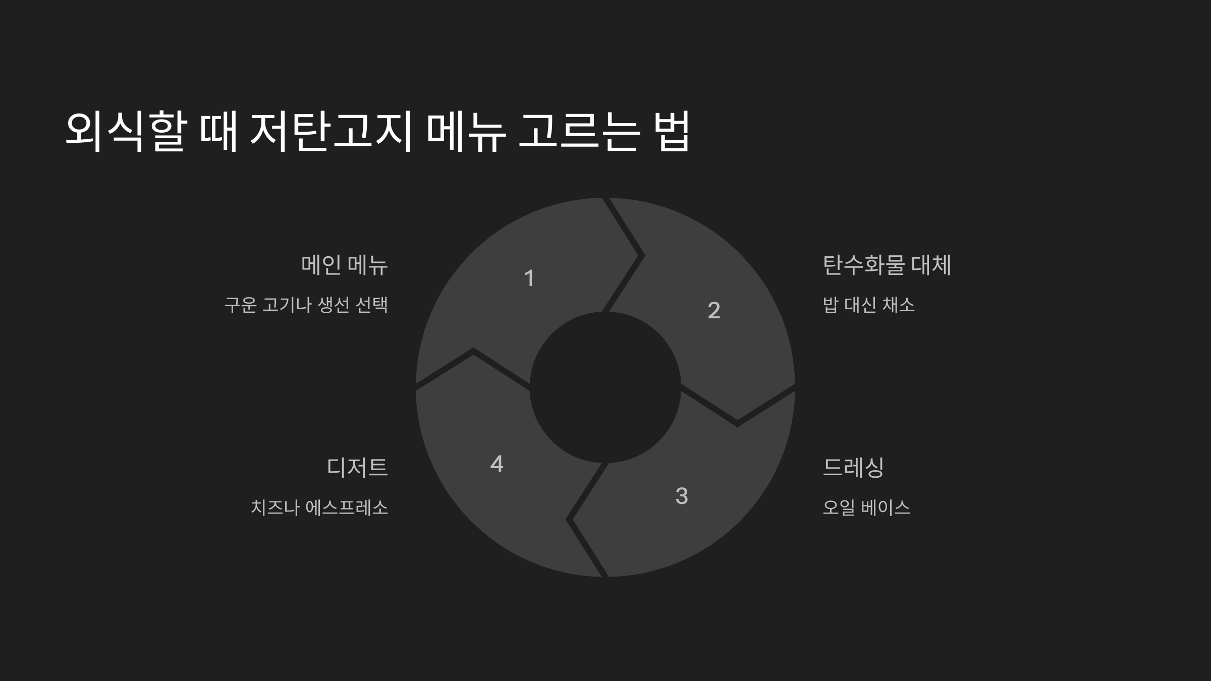 저탄고지 식단을 실천하다 보면 외식할 때 무엇을 먹어야 할지 고민될 수 있어요. 하지만 몇 가지 원칙만 기억하면 외식도 충분히 저탄고지 식단으로 즐길 수 있답니다! 🍖🥑