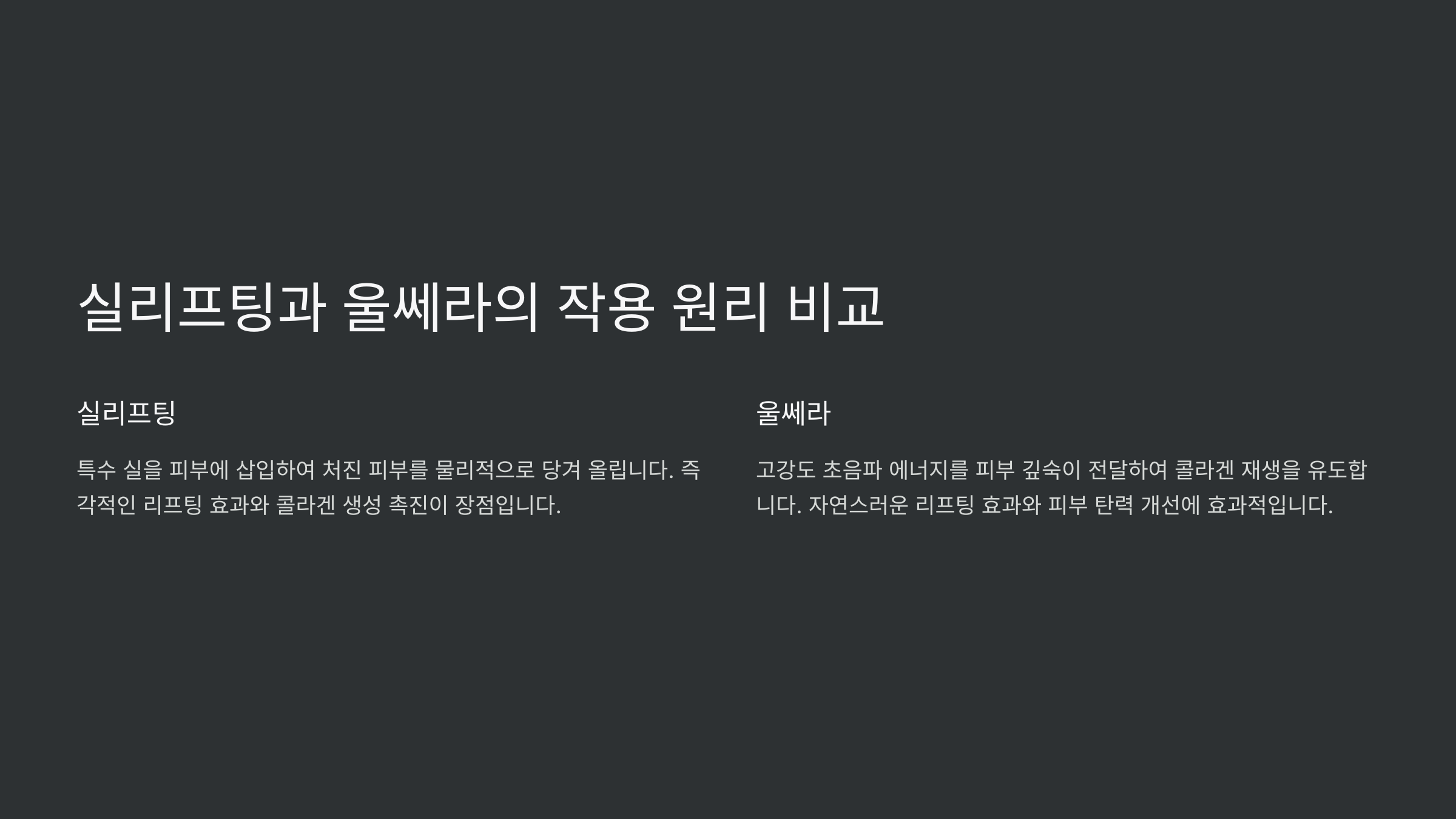 💡 실리프팅 vs. 울쎄라 원리 비교