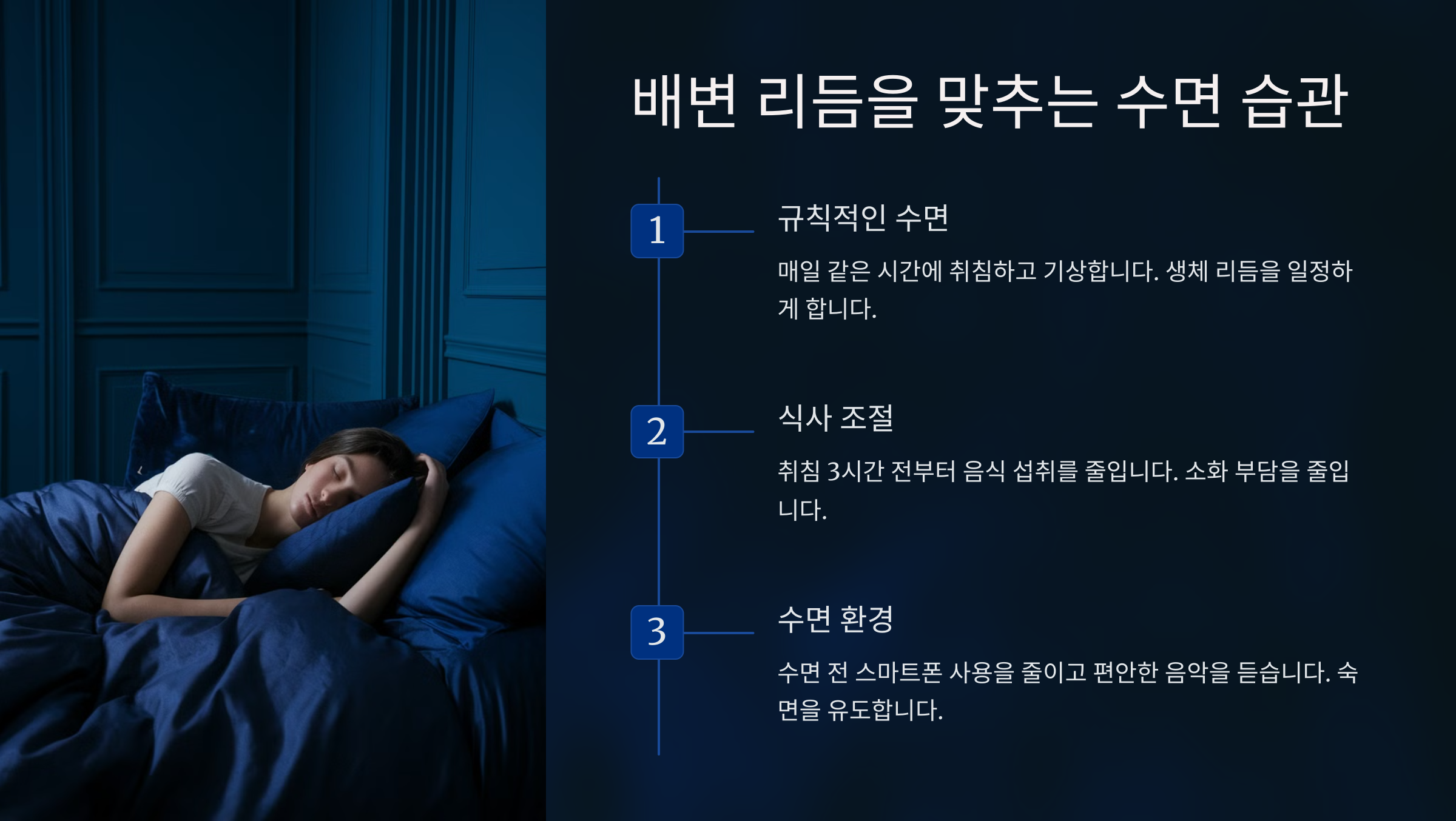 이제 배변 리듬을 맞추는 수면 습관을 알아볼까요? 🌙