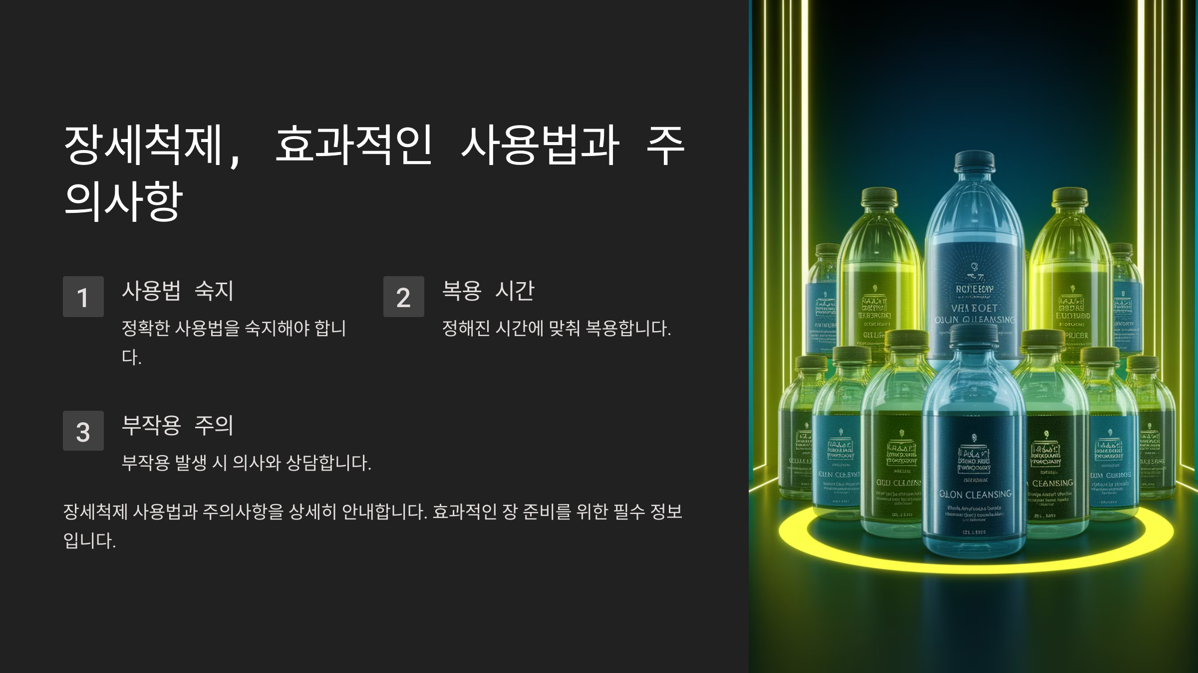 장세척제는 종류에 따라 맛과 효과가 다를 수 있어요. 최근에는 기존의 짠맛이나 불쾌한 맛을 줄인 제품도 나오고 있기 때문에, 자신에게 맞는 제품을 선택하는 것도 중요해요. 물과 함께 충분히 마시면 부담을 줄일 수 있어요.