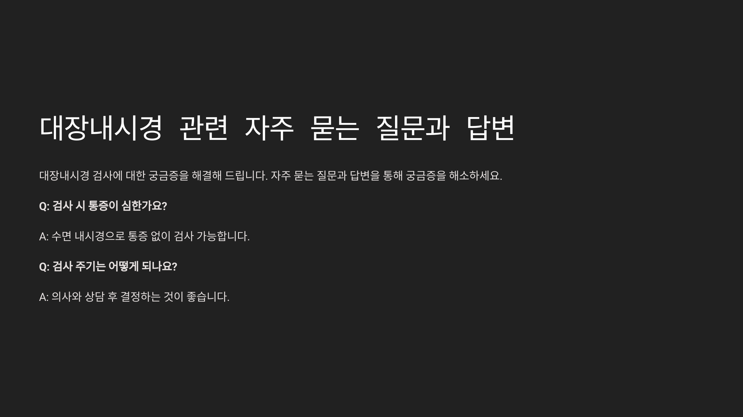 대장내시경 관련 자주 묻는 질문 (FAQ)