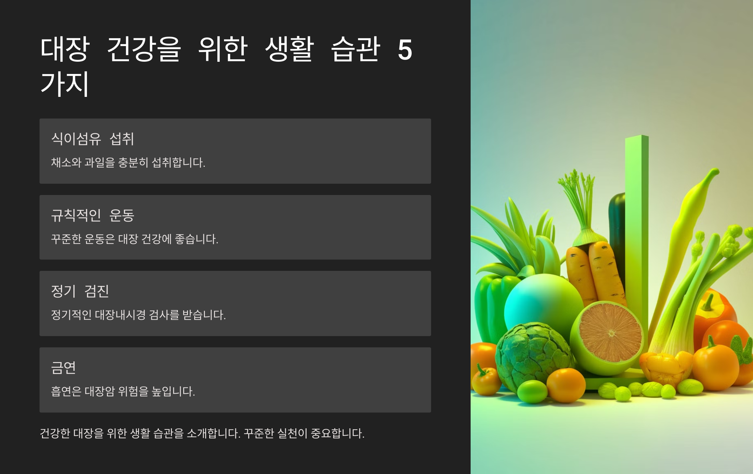 이제 본격적으로 대장 건강을 위한 필수 정보들을 살펴보아요! 🏥