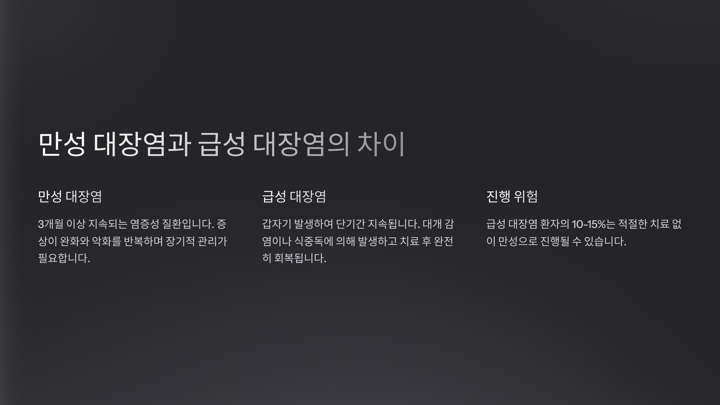 | 구분 | 급성 대장염 | 만성 대장염 |
