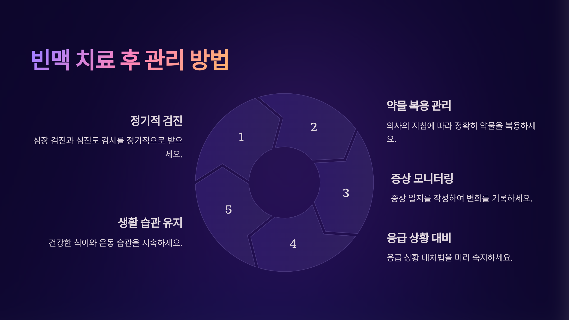 💡 최신 기술 덕분에 빈맥 치료가 더욱 효과적이고 안전해지고 있어요! 이제 치료 후 관리 방법을 살펴볼까요? ⬇️