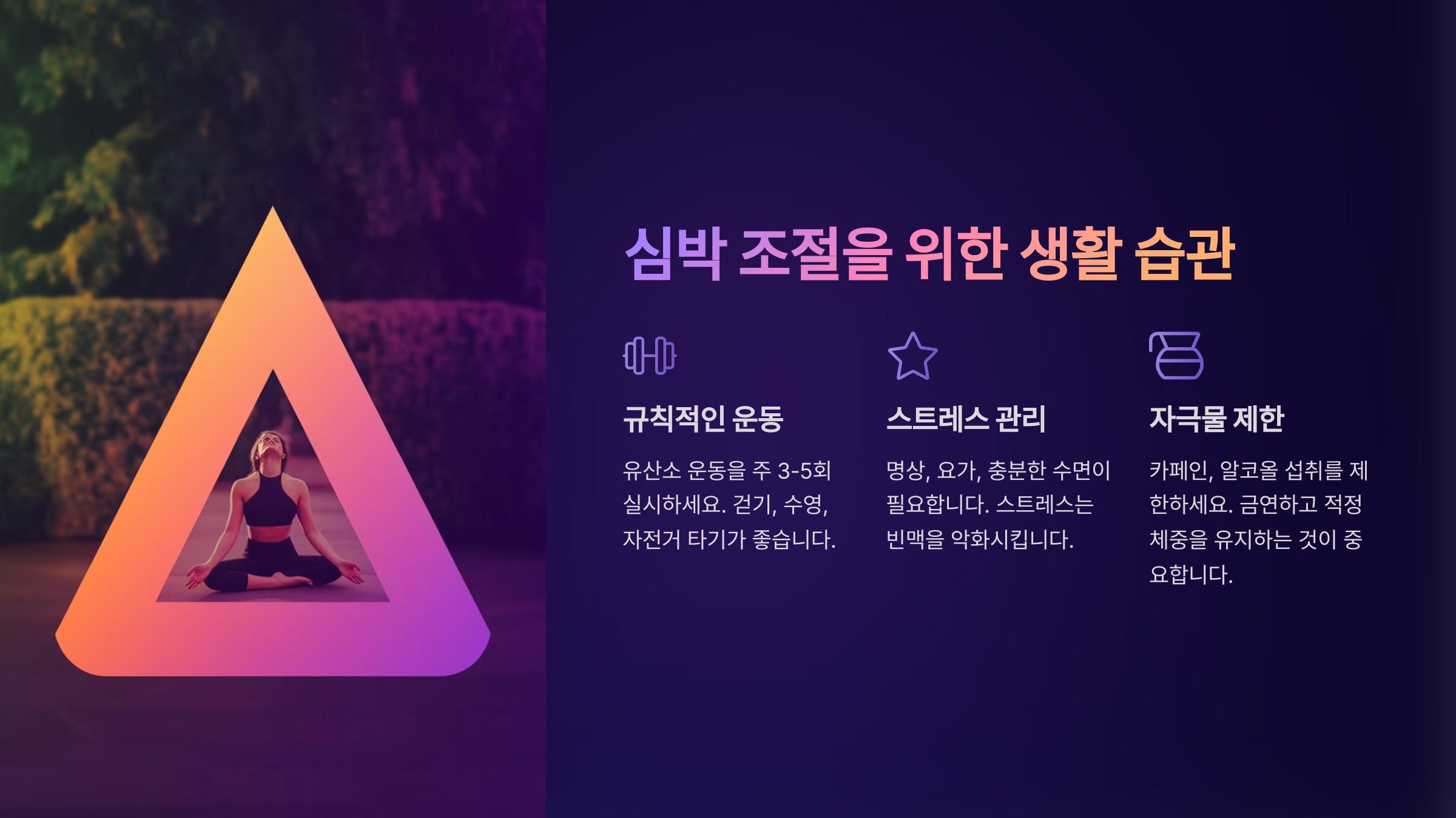 💡 시술을 고려하는 경우, 정확한 진단과 의료진의 상담이 필수예요! 이제 심박 조절을 돕는 생활 습관에 대해 알아볼까요? ⬇️