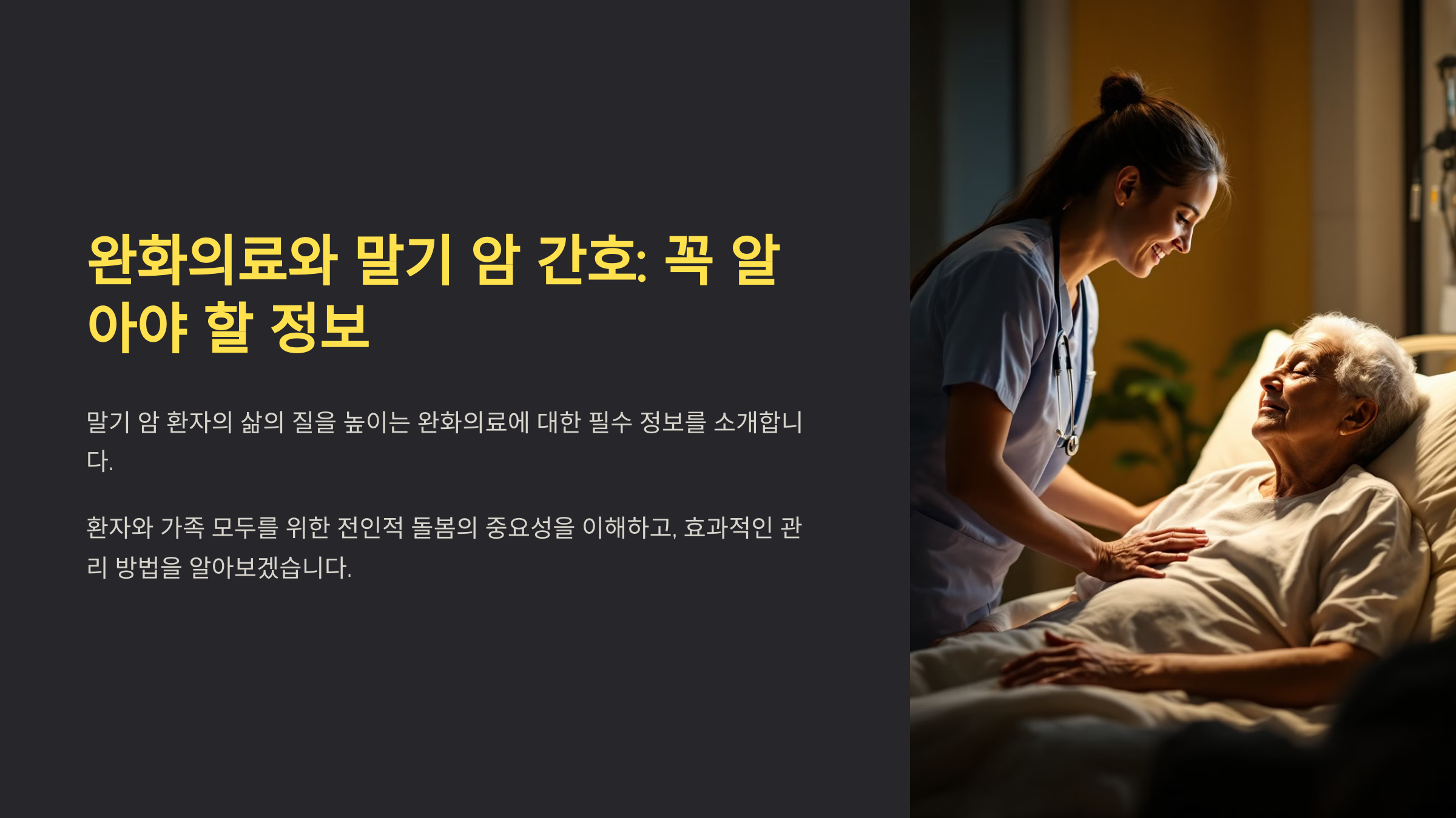 그렇다면 말기 암 환자의 통증 관리부터 영양 공급, 가족의 심리적 지원까지, 실질적으로 도움이 될 수 있는 정보를 자세히 알아볼까요?