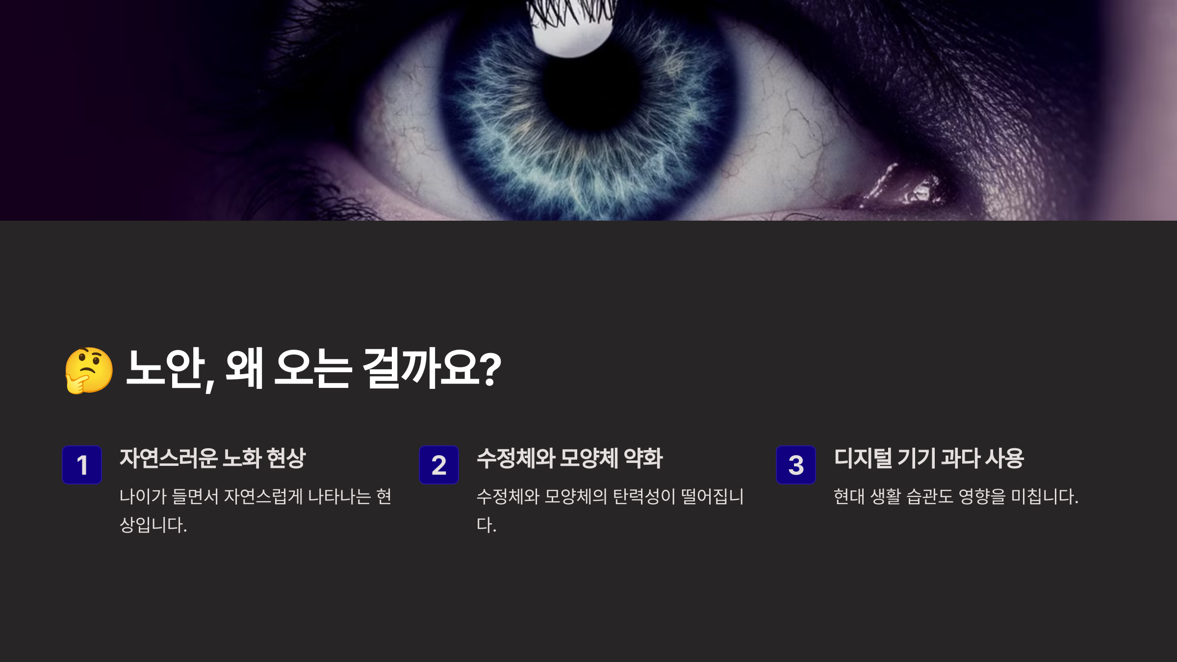 🔽 다음 섹션에서 '노안이 오는 원인'을 알아볼게요!