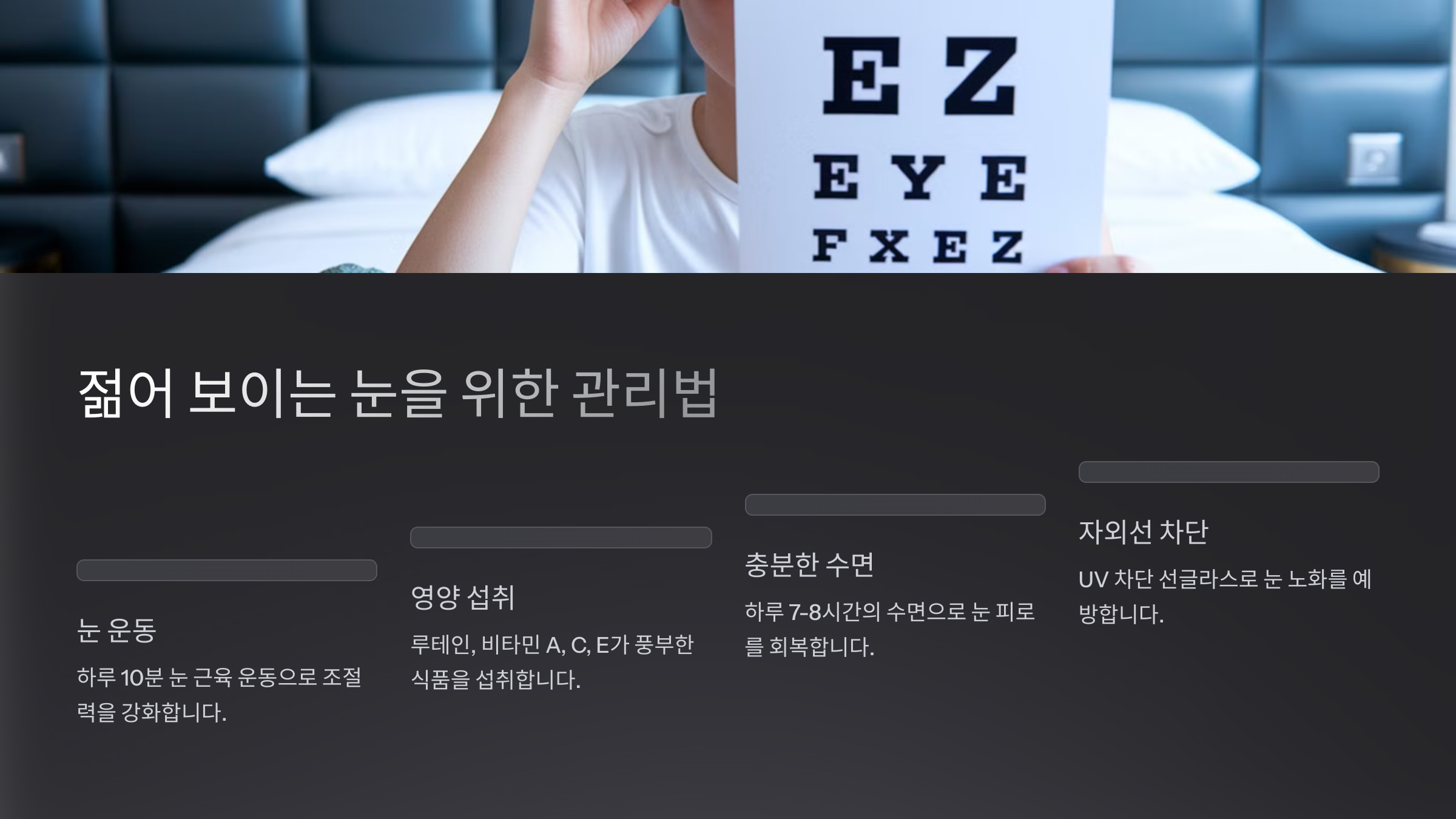 | 수면 부족 | 눈 회복력 저하, 피로 누적 |