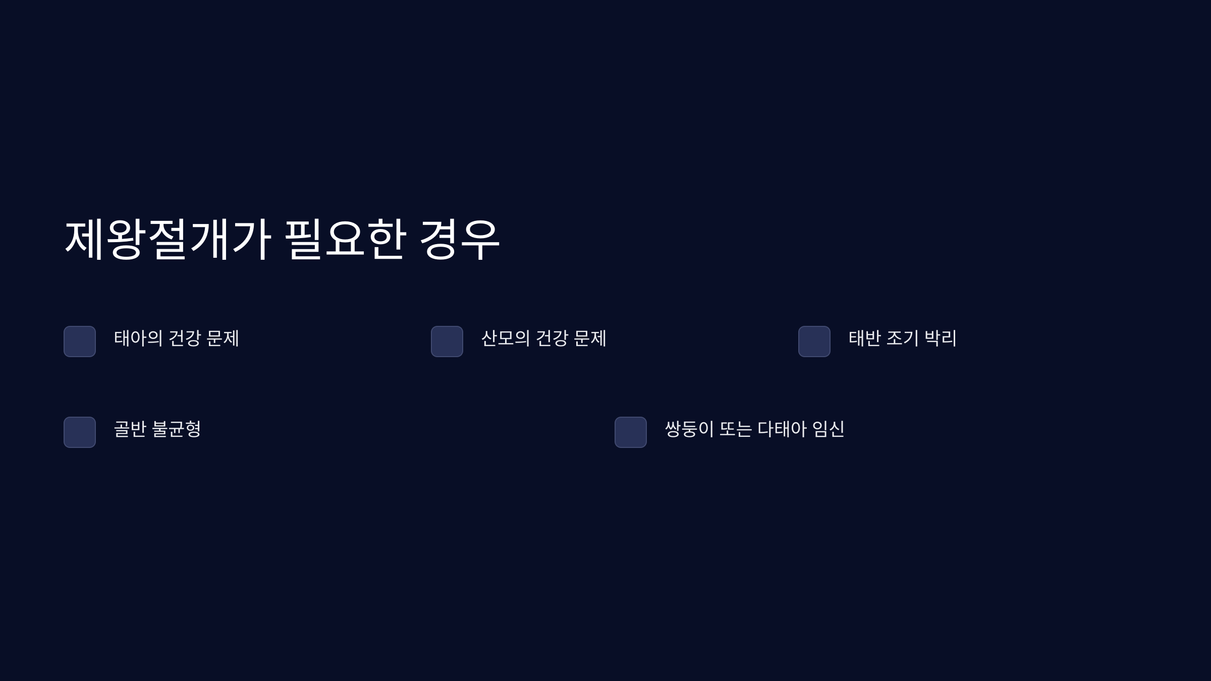 | 태아 건강 이상 | 태아의 심박수가 불안정하거나 저산소증 위험이 있는 경우 |