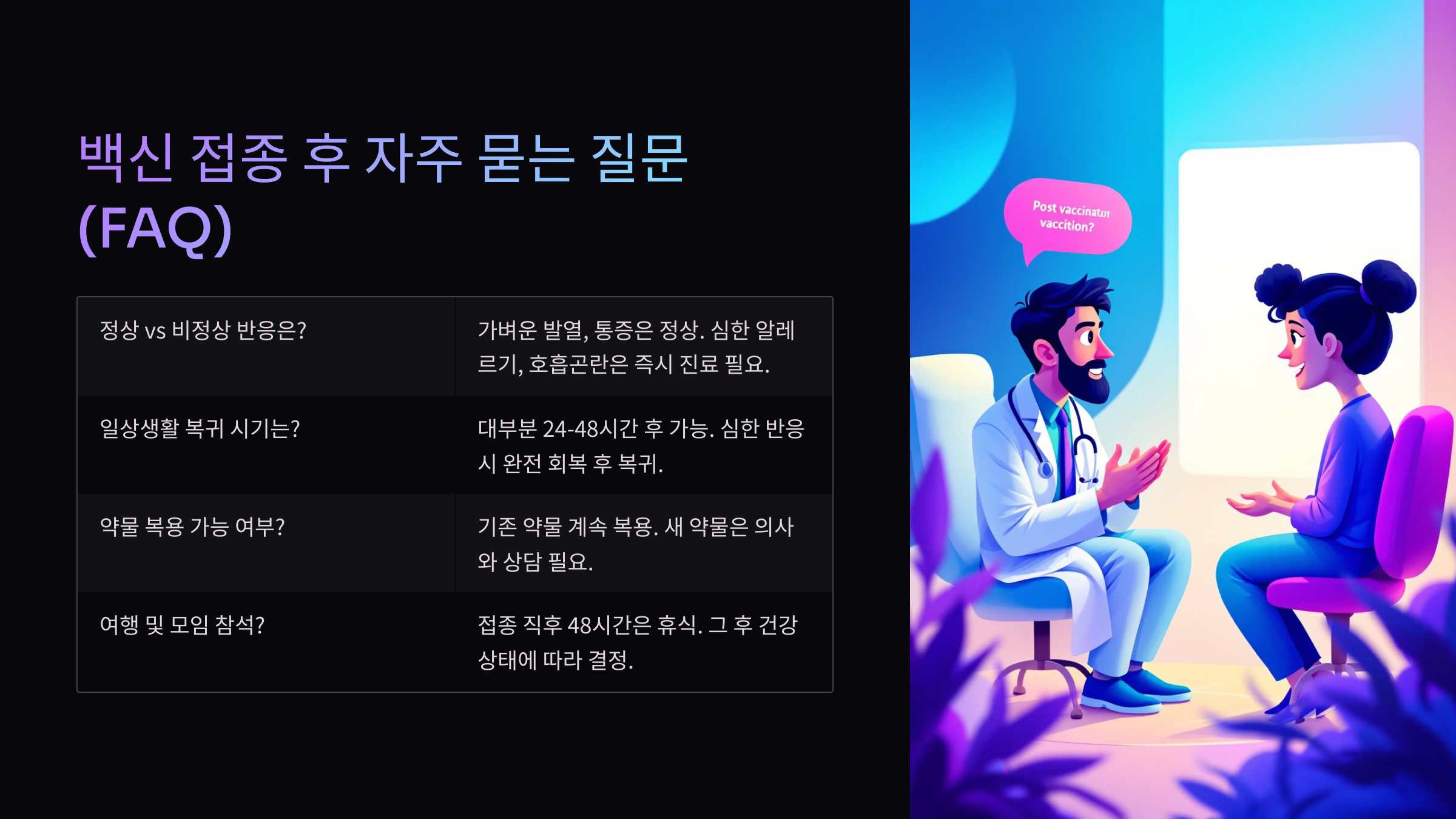 백신 접종 후 자주 묻는 질문 (FAQ)