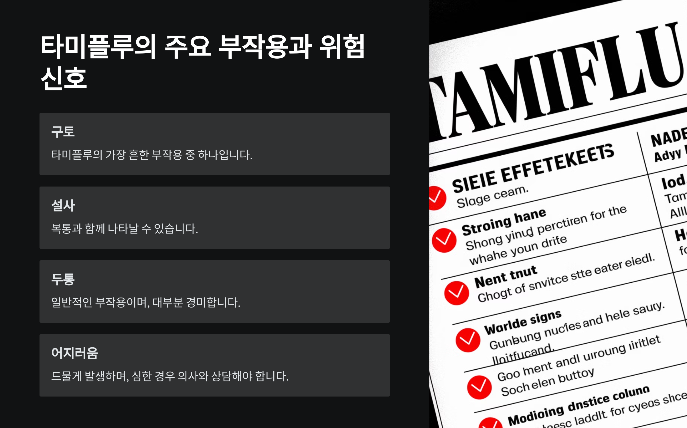 ⚠️ 타미플루 복용 시 나타날 수 있는 부작용