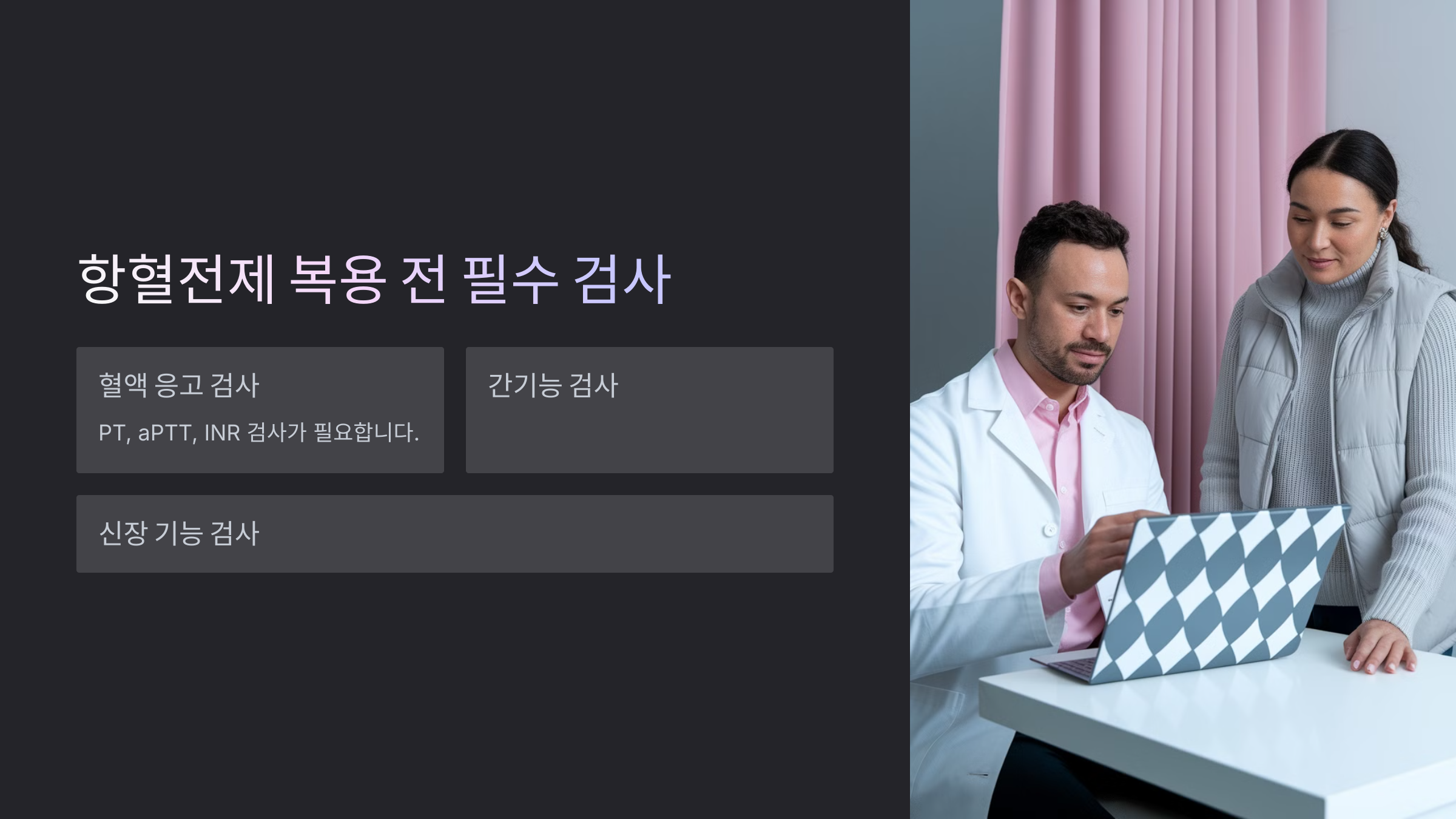 🔜 다음으로 항혈전제 복용 전 꼭 알아야 할 검사 항목에 대해 살펴볼까요?