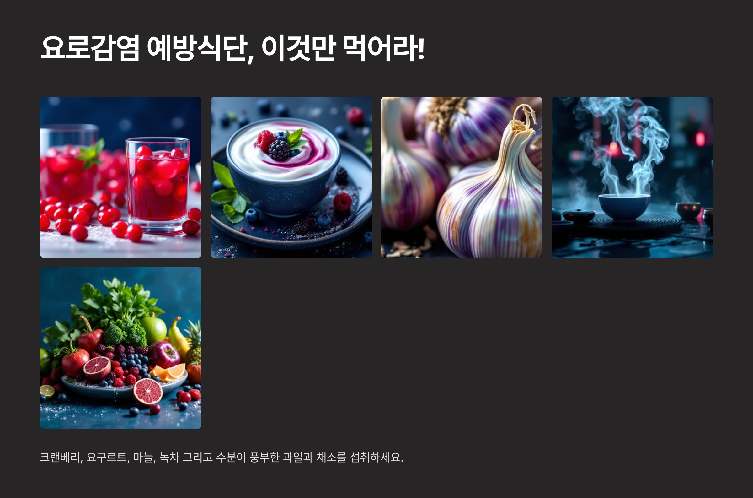 | 요거트 | 프로바이오틱스가 면역력 강화 |