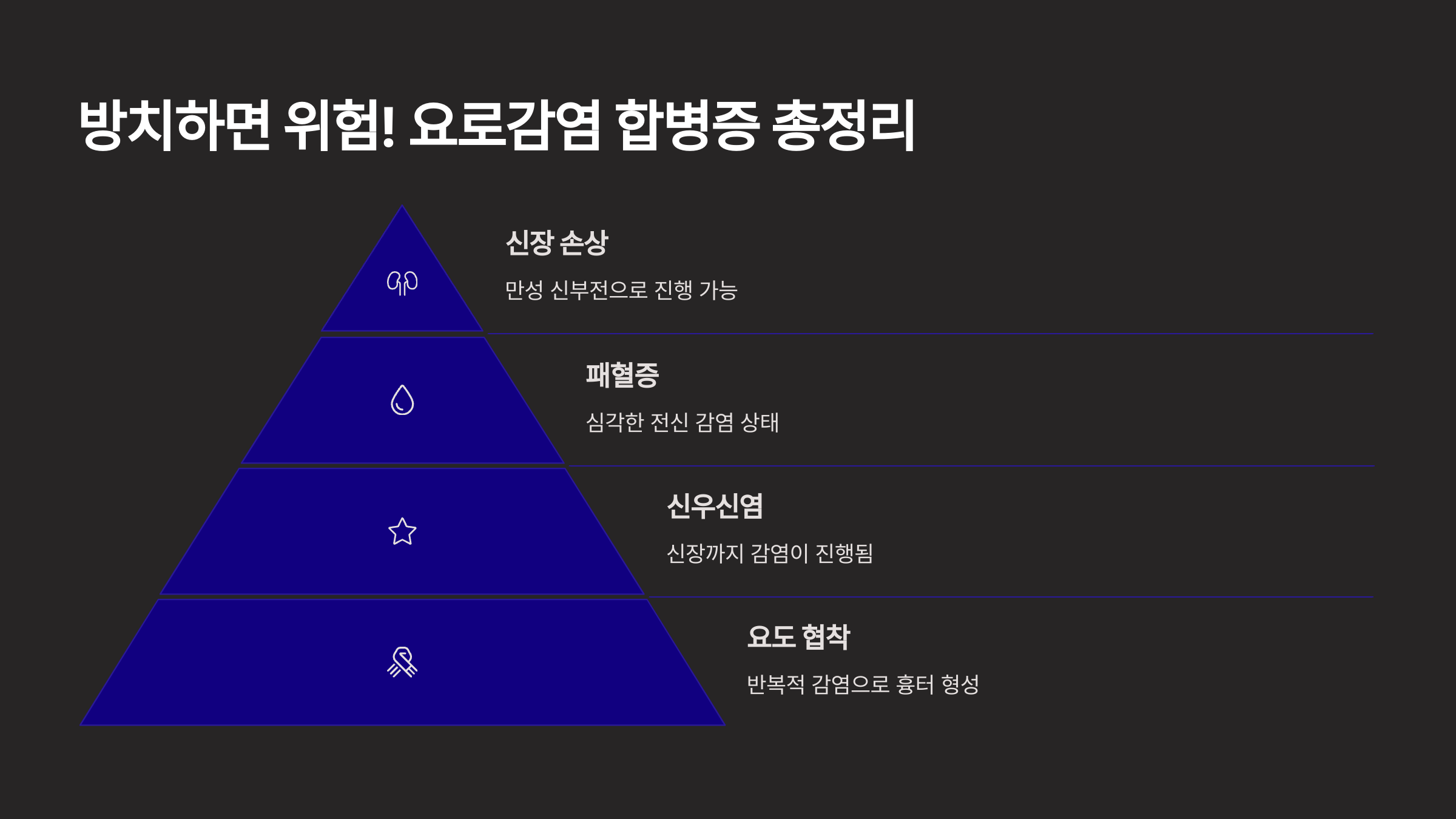 특히 요로감염이 신장까지 번지면 신우신염으로 발전할 위험이 커요. 심한 경우 패혈증까지 발생할 수 있으니 절대 가볍게 넘기면 안 돼요. 🚨