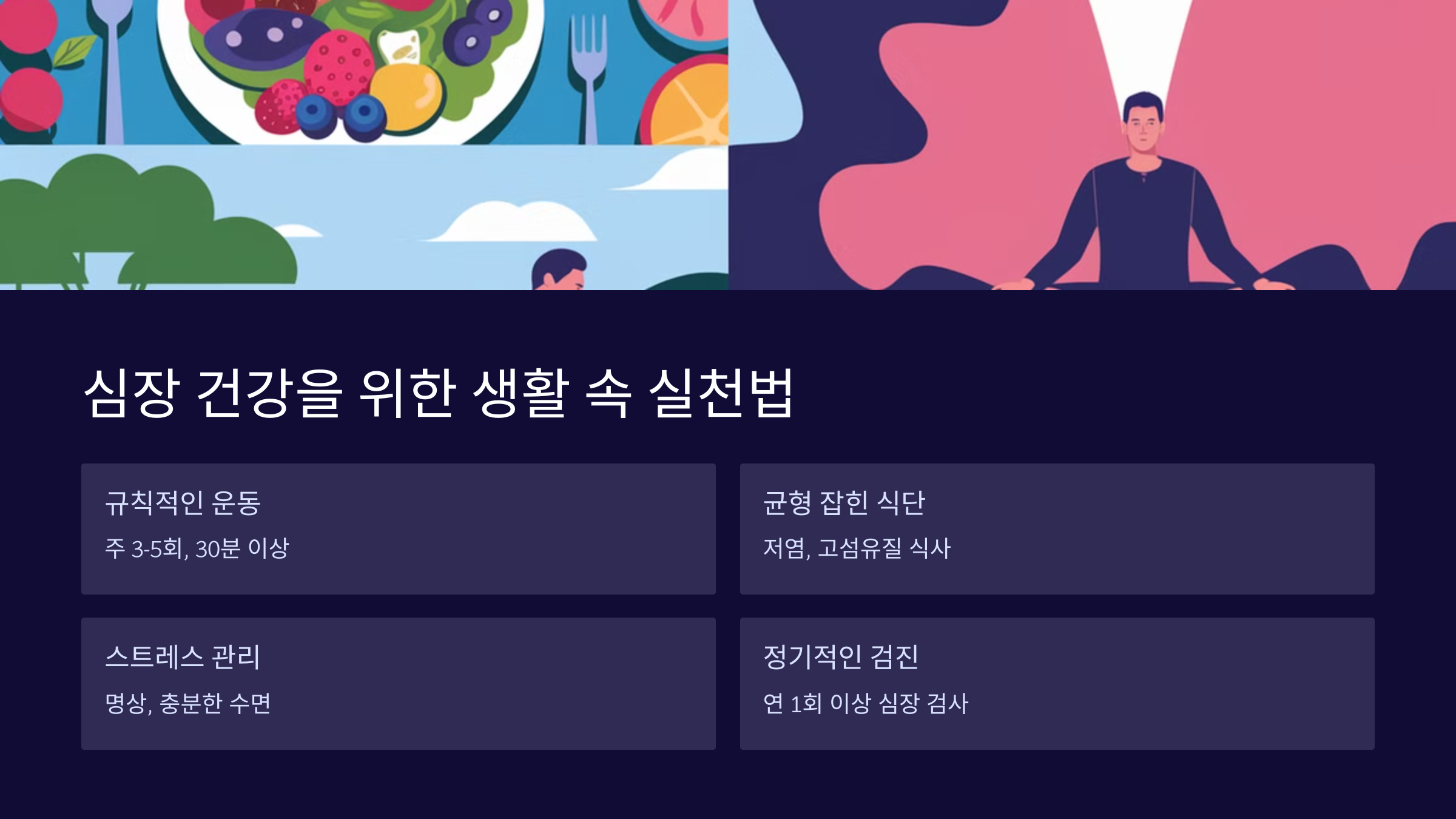 - 🚶♂️ 규칙적인 운동: 가벼운 유산소 운동을 통해 심장 기능을 강화할 수 있어요.