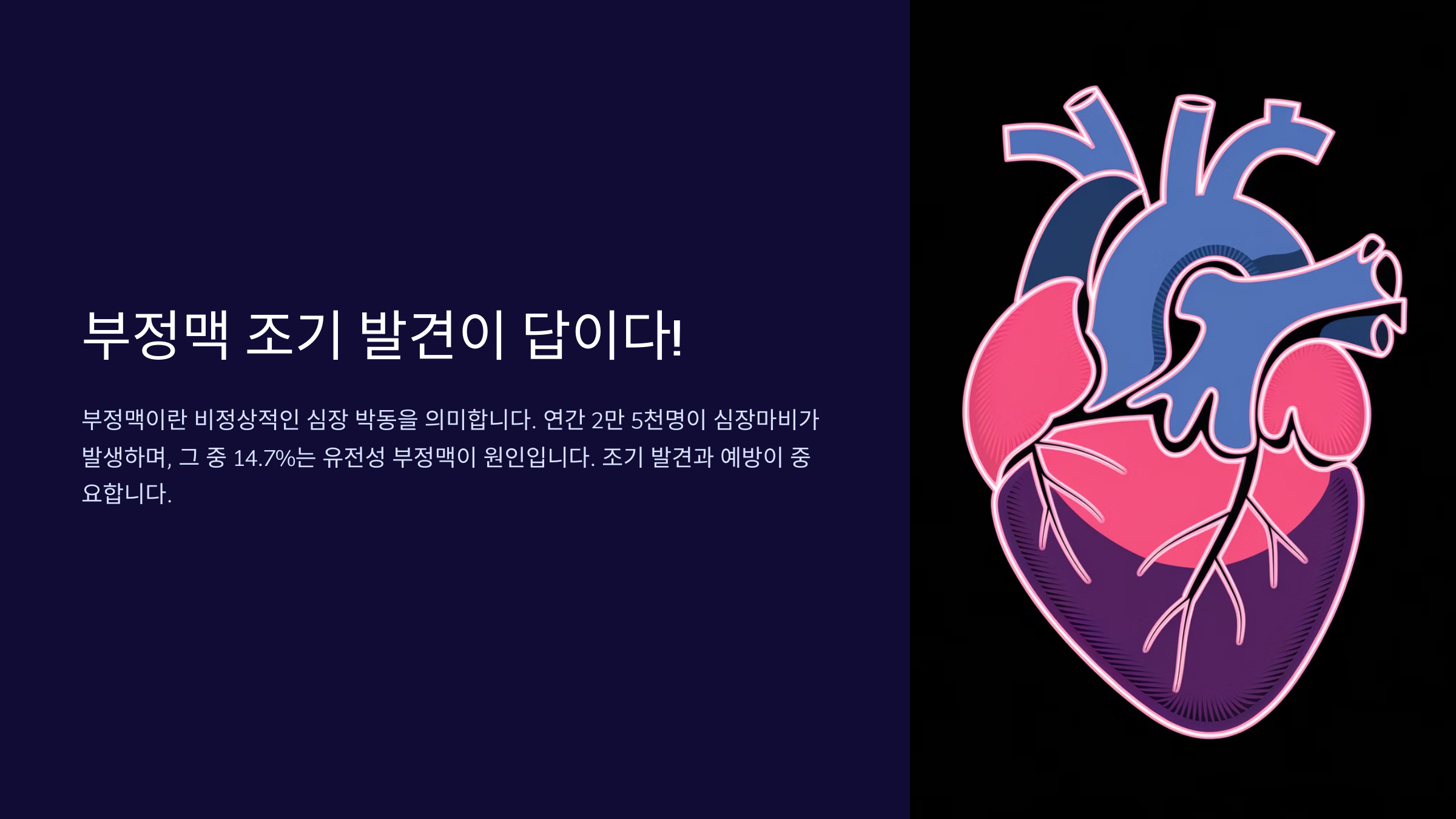 - 🧬 유전적 돌연변이: 일부 부정맥 유형(예: 긴 QT 증후군, 브루가다 증후군)은 특정 유전자의 변이로 인해 발생해요.
