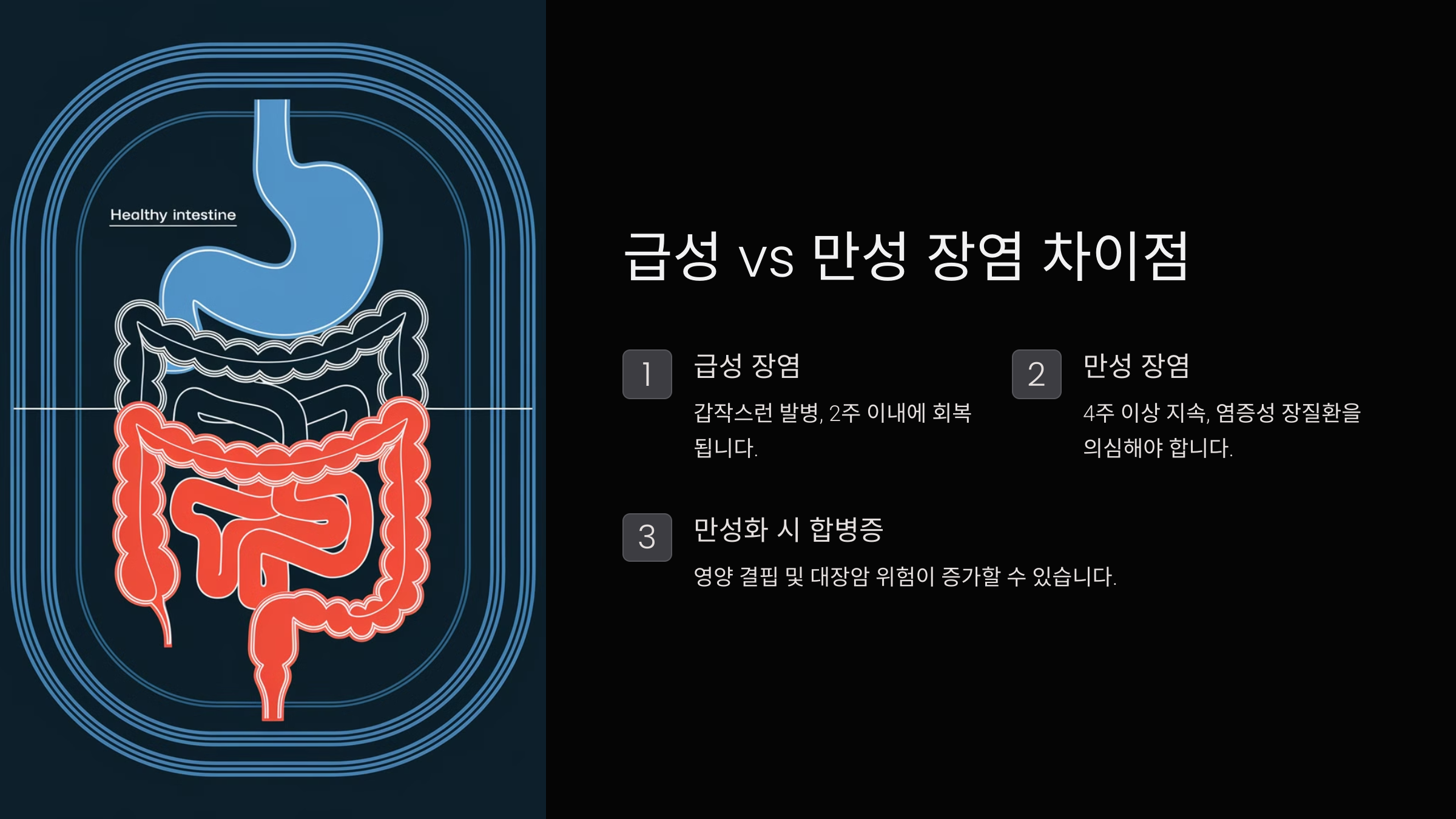 다음으로, 급성 장염과 만성 장염의 차이점을 알아볼까요? 🧐