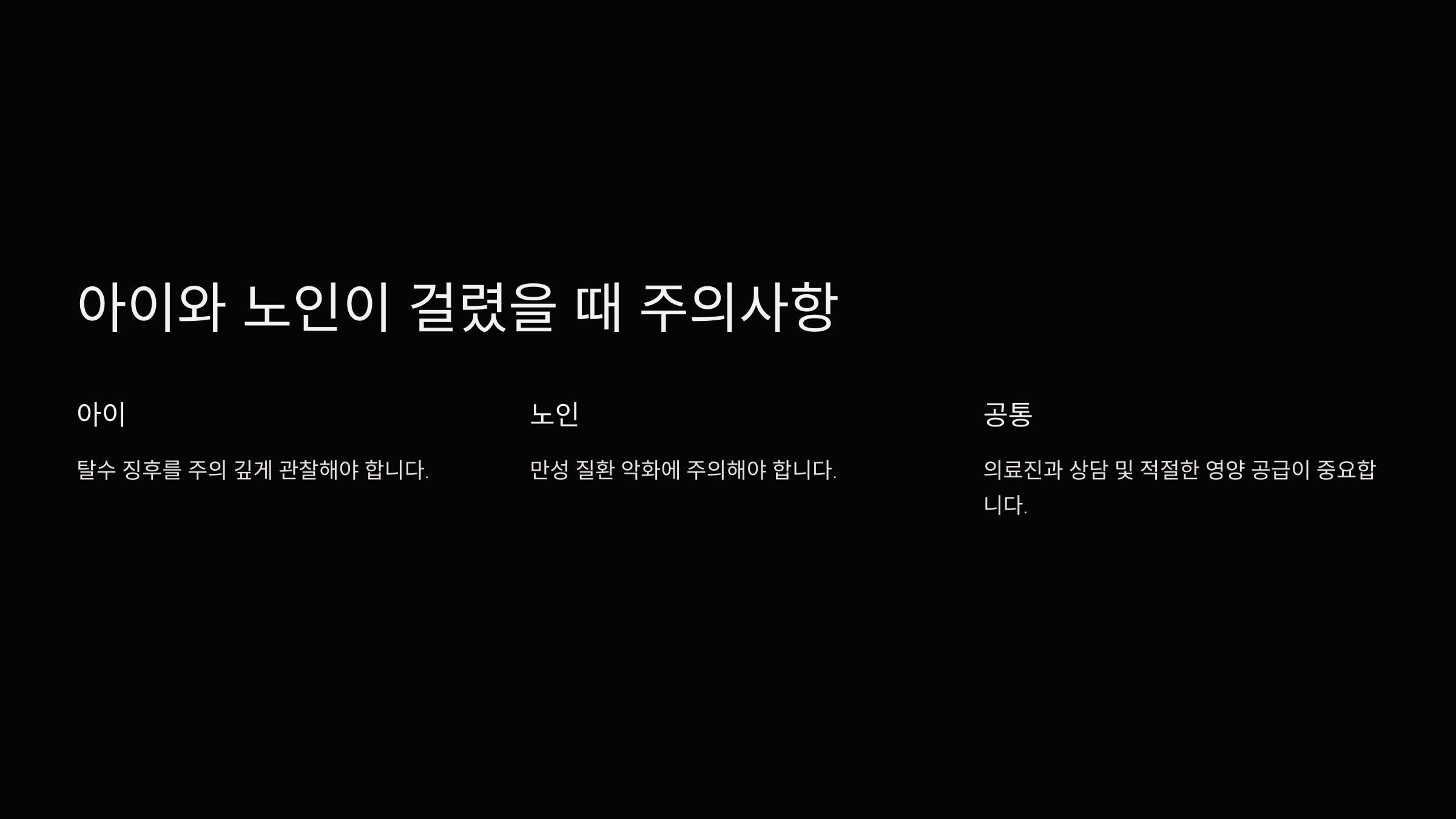 🔹 아이와 노인이 걸렸을 때 주의사항