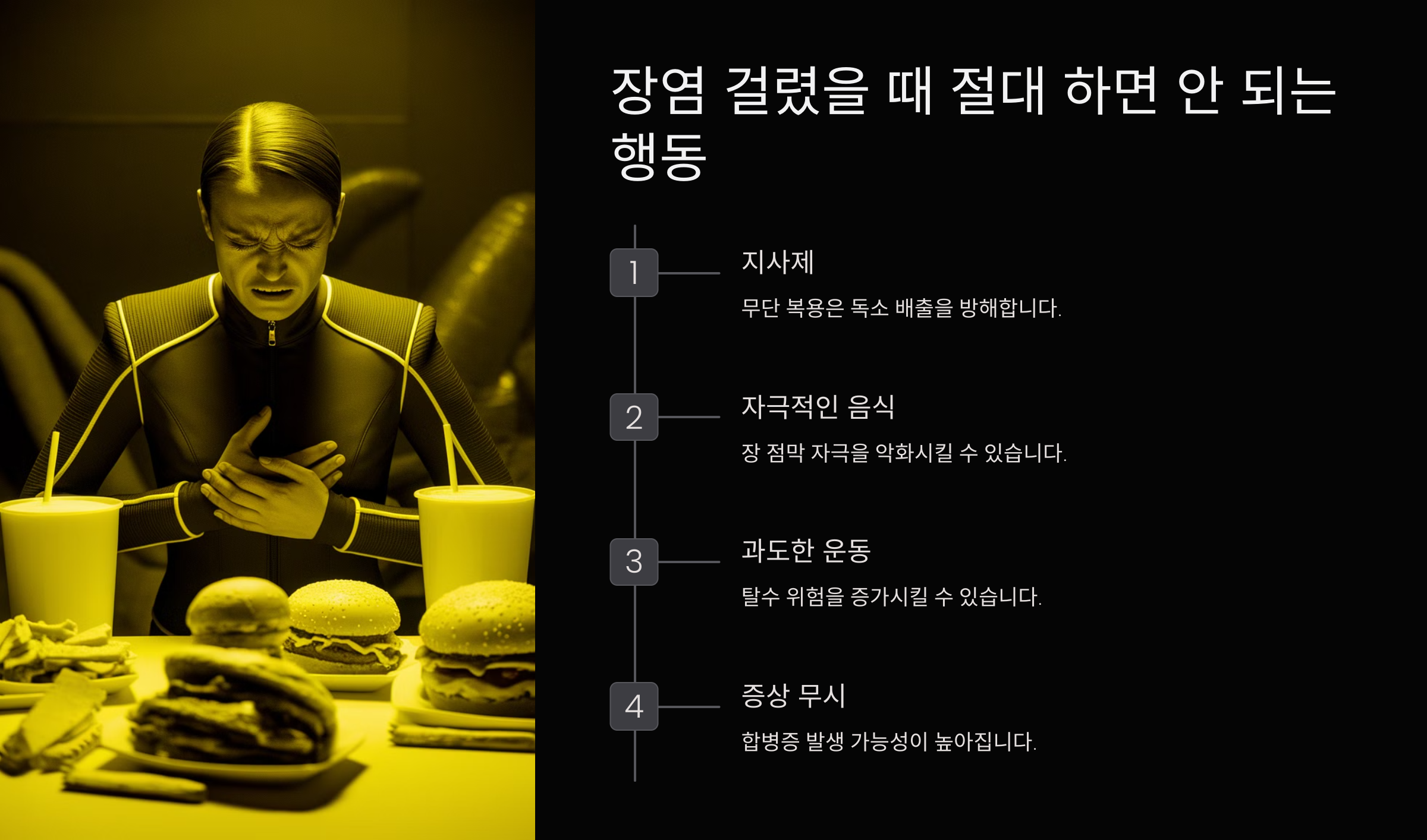 🔹 장염 걸렸을 때 절대 하면 안 되는 행동