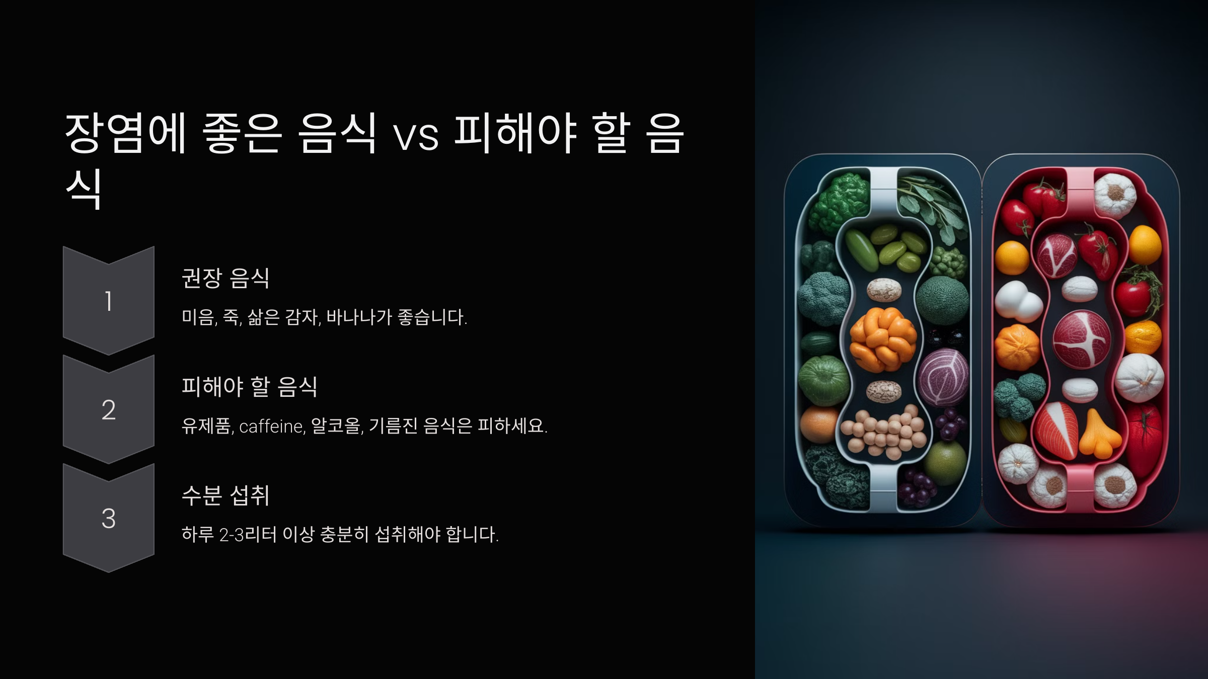 🔹 장염에 좋은 음식 vs 피해야 할 음식