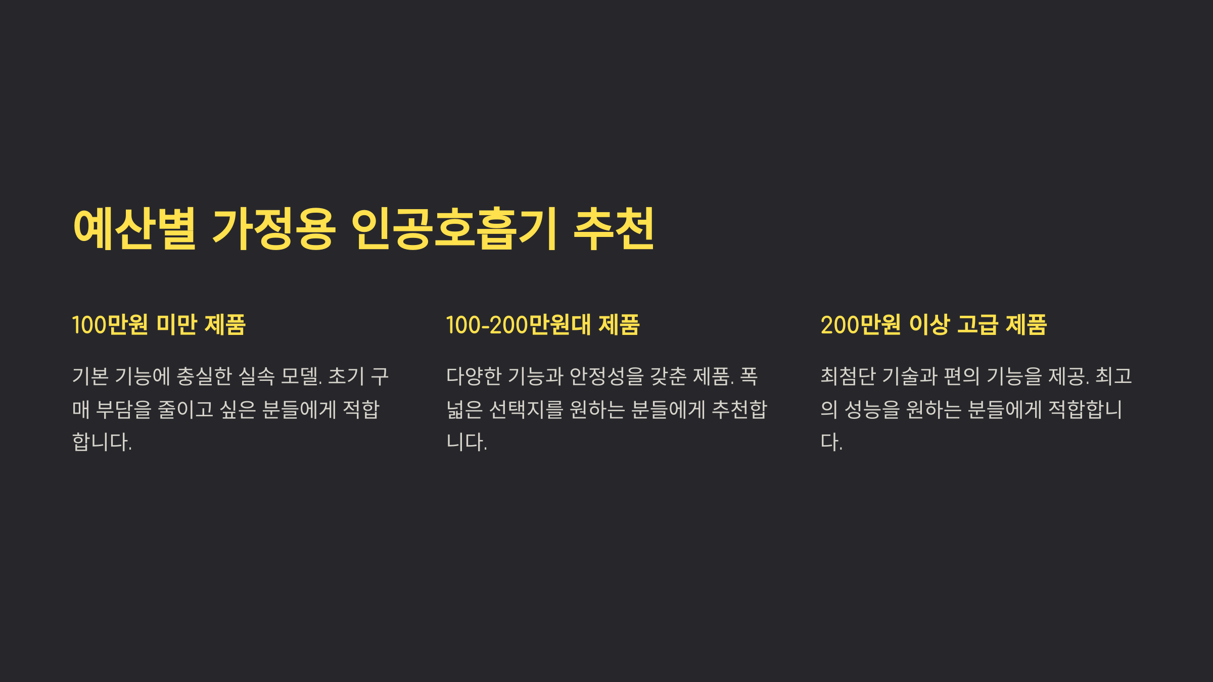 예산을 기준으로 3가지 카테고리로 나누어 추천해볼게요.