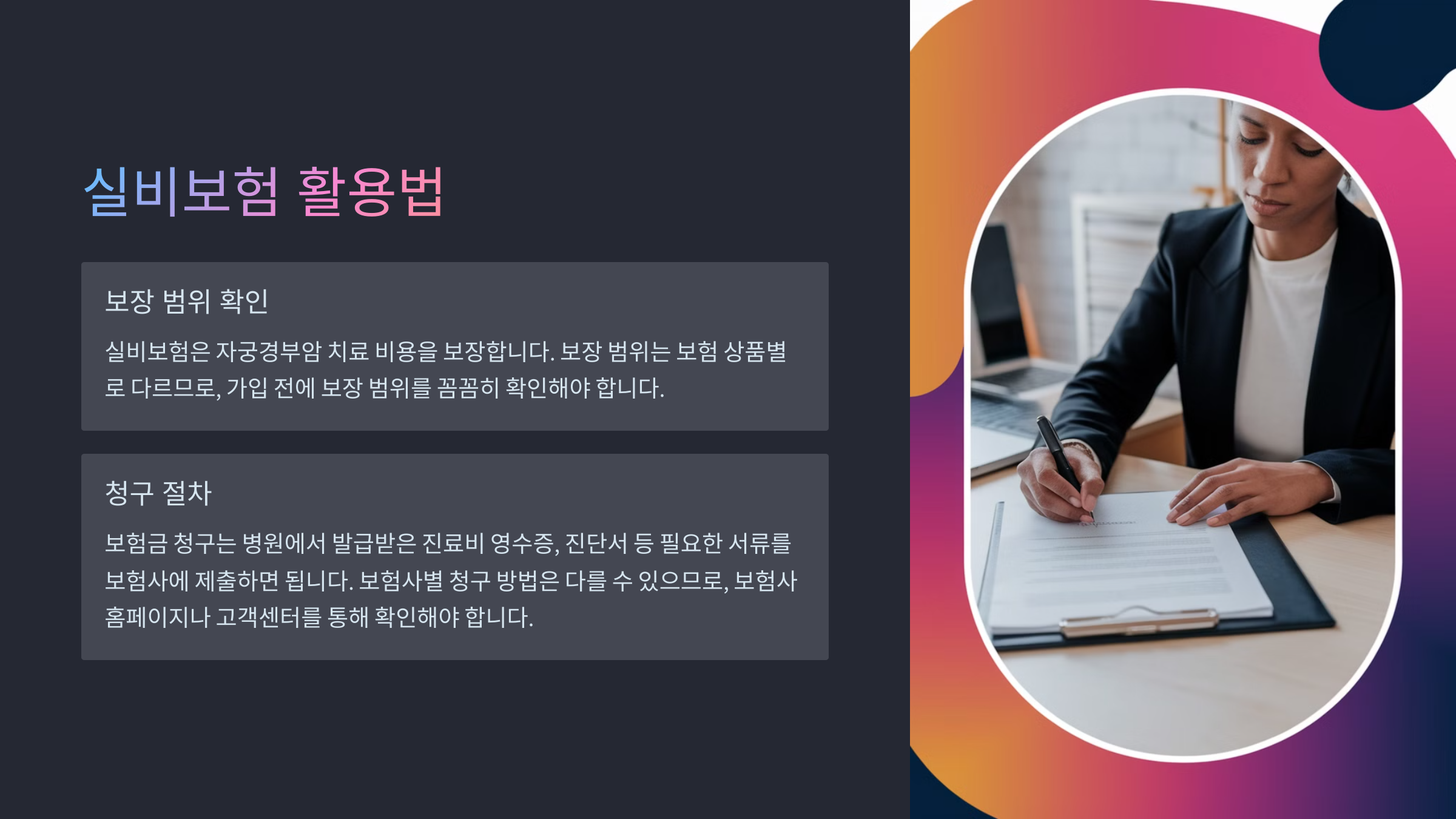 치료비 부담을 줄이려면 실비보험과 정부 지원 제도를 적극 활용하는 것이 중요해요. 다음 섹션에서는 건강보험과 실비보험 활용법을 자세히 알아볼게요! 😊