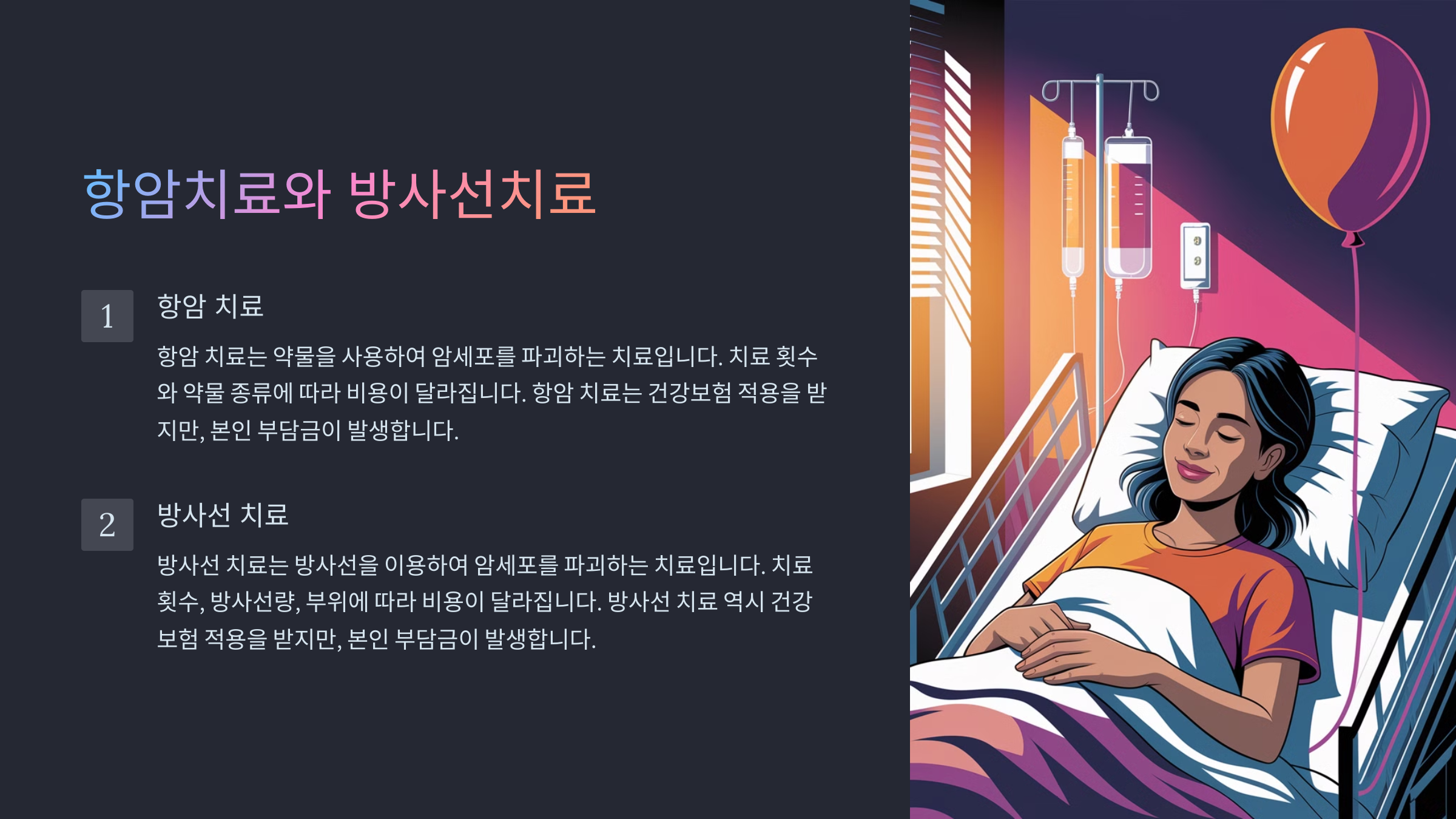 - 🔹 항암치료: 건강보험 적용되지만 일부 약제 비급여
