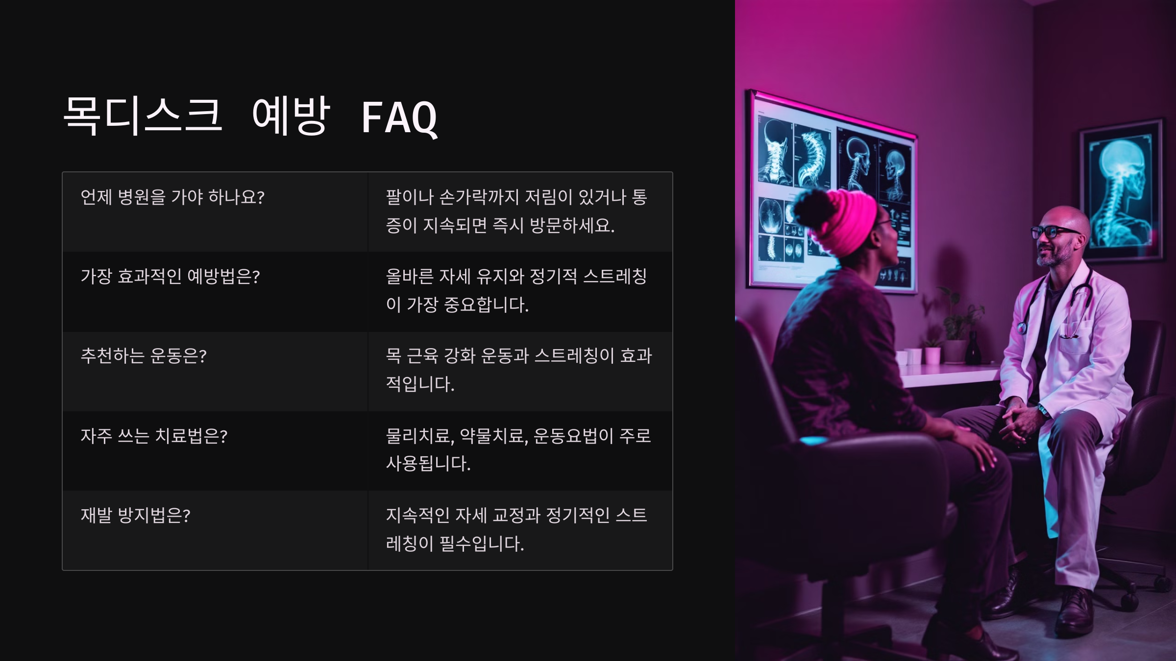 작은 습관 하나 바꾸는 것만으로도 목디스크는 멀리할 수 있어요. 내 몸을 위한 투자, 어렵지 않아요!
