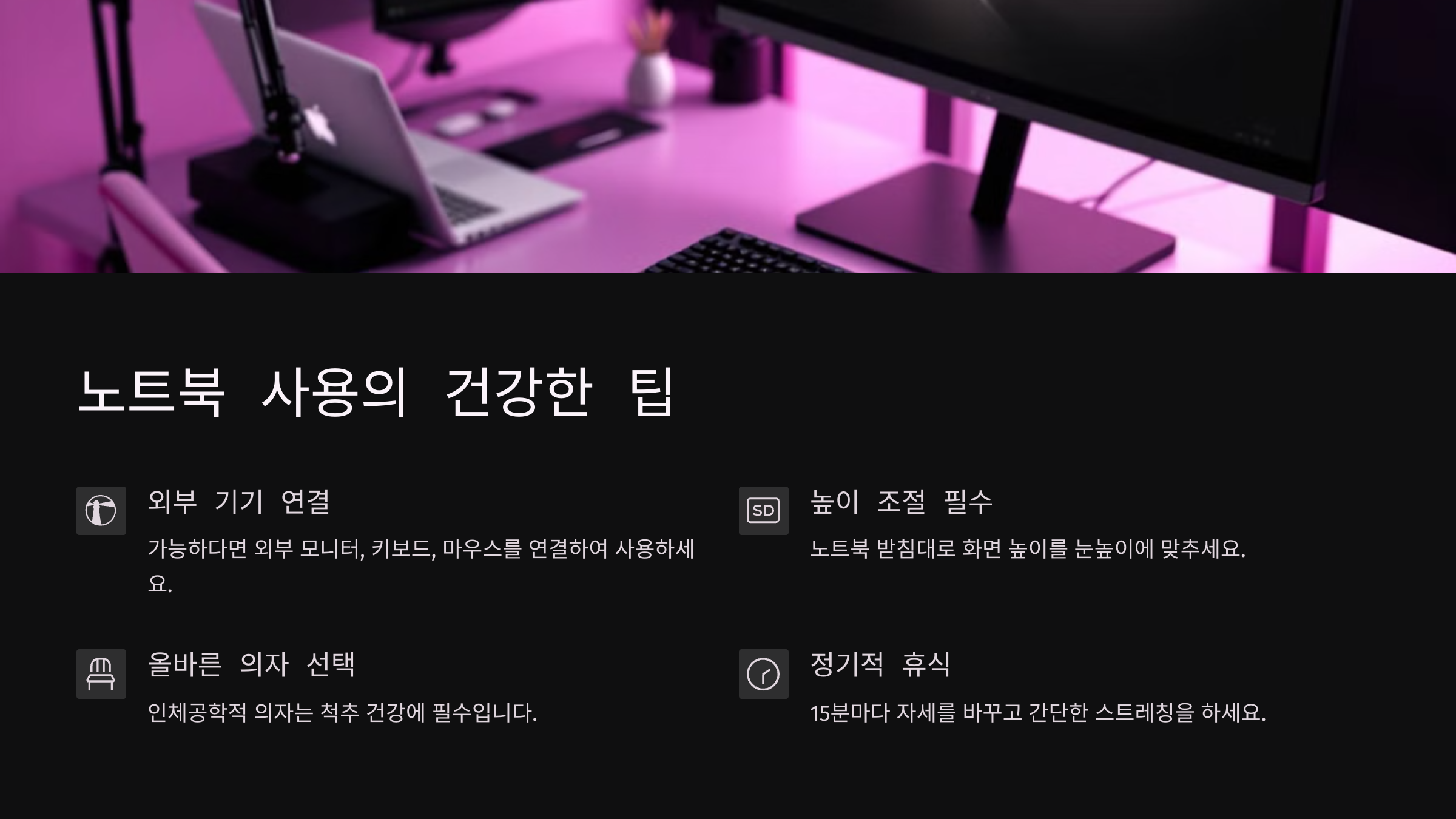 이렇게 사소해 보이지만 중요한 환경 설정만 바꿔도 목 건강을 지킬 수 있어요. 💡