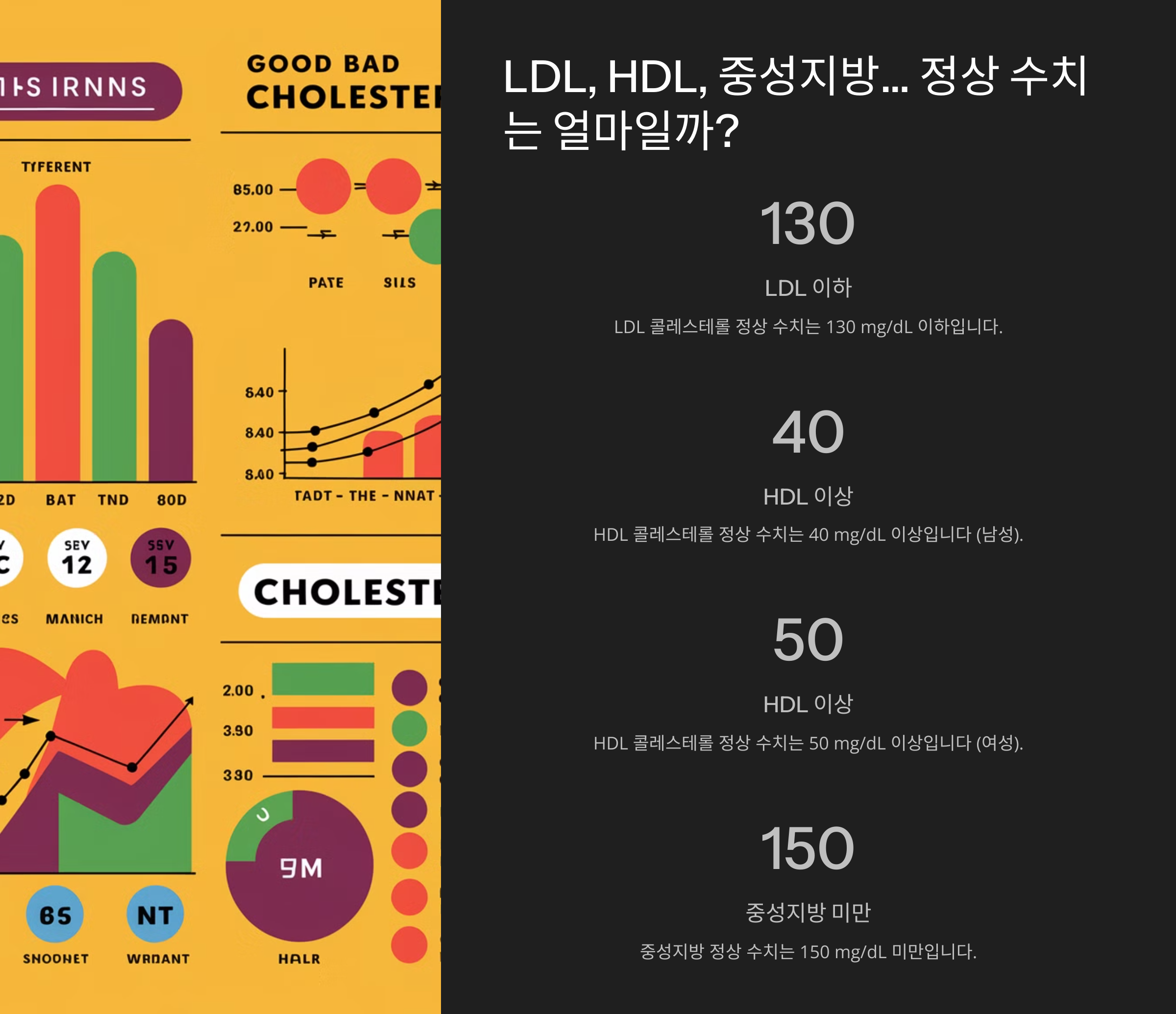 🔍 다음 섹션에서는, LDL, HDL, 중성지방 등 정상 수치에 대해 자세히 알아볼게요! 👇