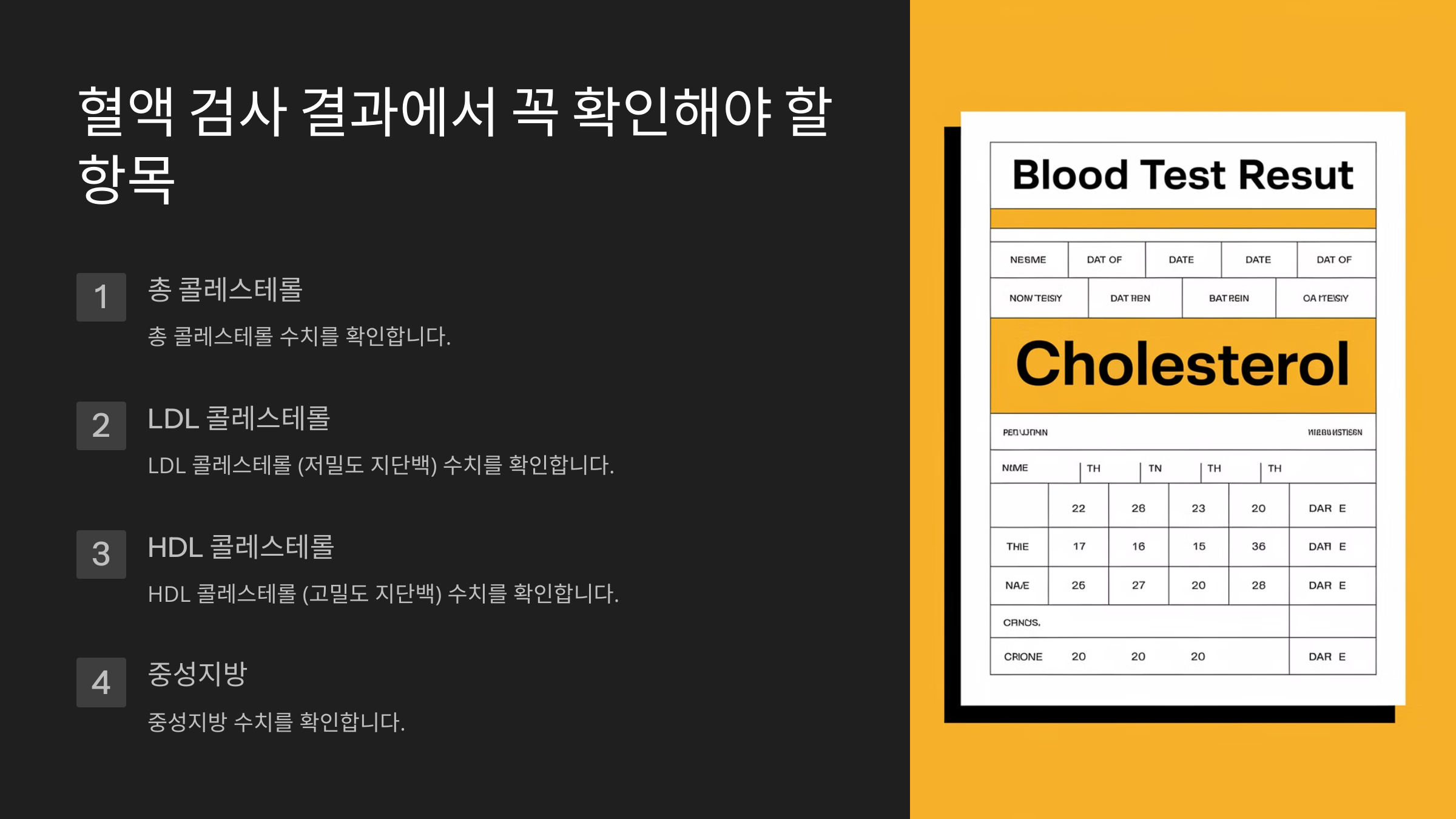 콜레스테롤 검사를 받았다면, 이제 결과를 제대로 해석하는 게 중요해요! 그런데 혈액 검사표를 보면 숫자도 많고, 어렵게 느껴질 수 있어요. 그렇다면 어떤 항목을 꼭 확인해야 할까요? 🤔