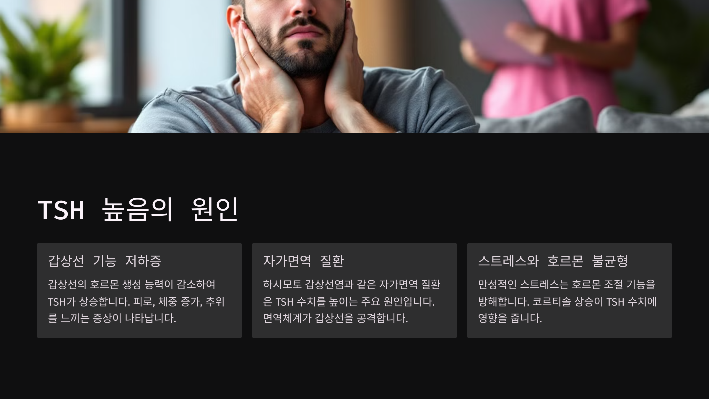 | 만성 스트레스 | TSH 증가 | 호르몬 분비 억제, 기능 저하 |