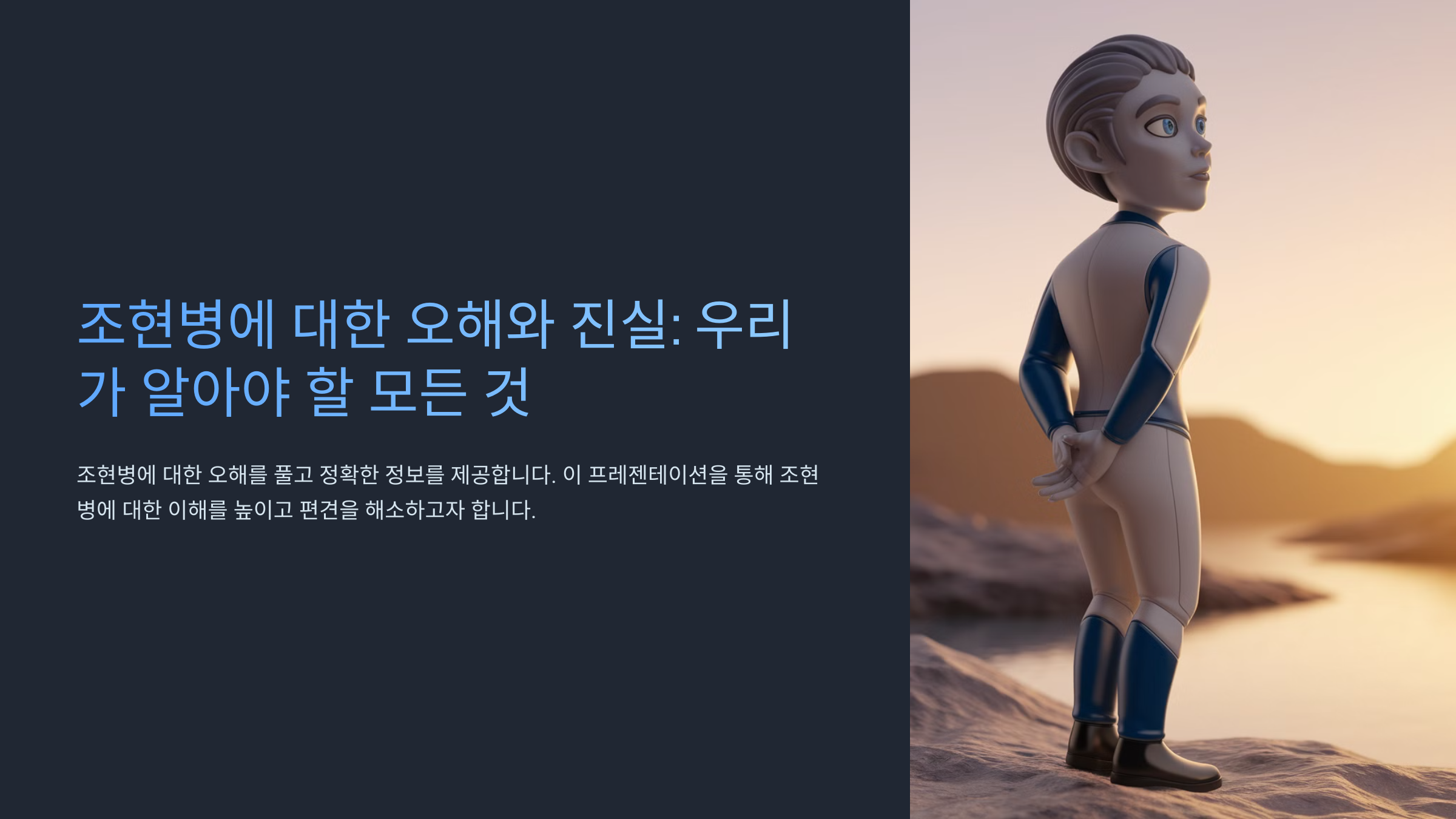 이처럼 조현병에 대한 편견은 사실과 다르다는 걸 알 수 있어요. 우리가 올바른 정보를 알고 있다면, 편견을 줄이고 조현병 환자들이 사회에서 더 나은 삶을 살 수 있도록 도울 수 있어요.
