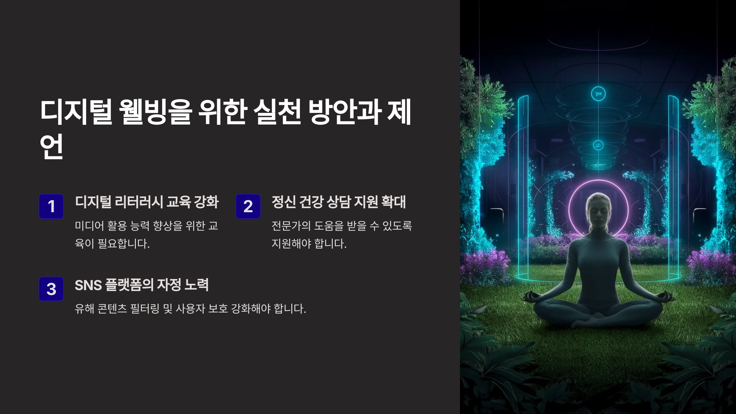 SNS는 적절히 사용하면 유용한 도구지만, 지나치면 우리의 정신 건강을 해칠 수 있어요. 다음 섹션에서는 ‘SNS를 건강하게 활용하는 방법’에 대해 이야기해볼게요! 😊