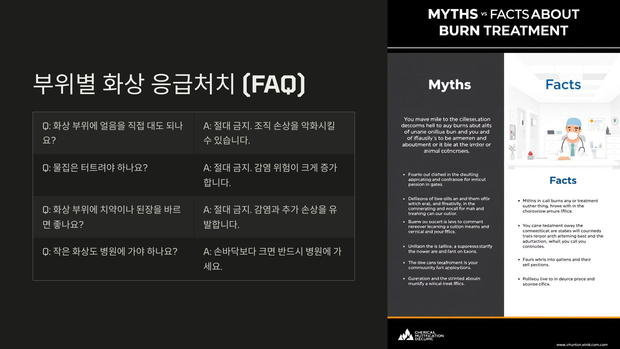 ❓ 부위별 화상 응급처치 (FAQ)