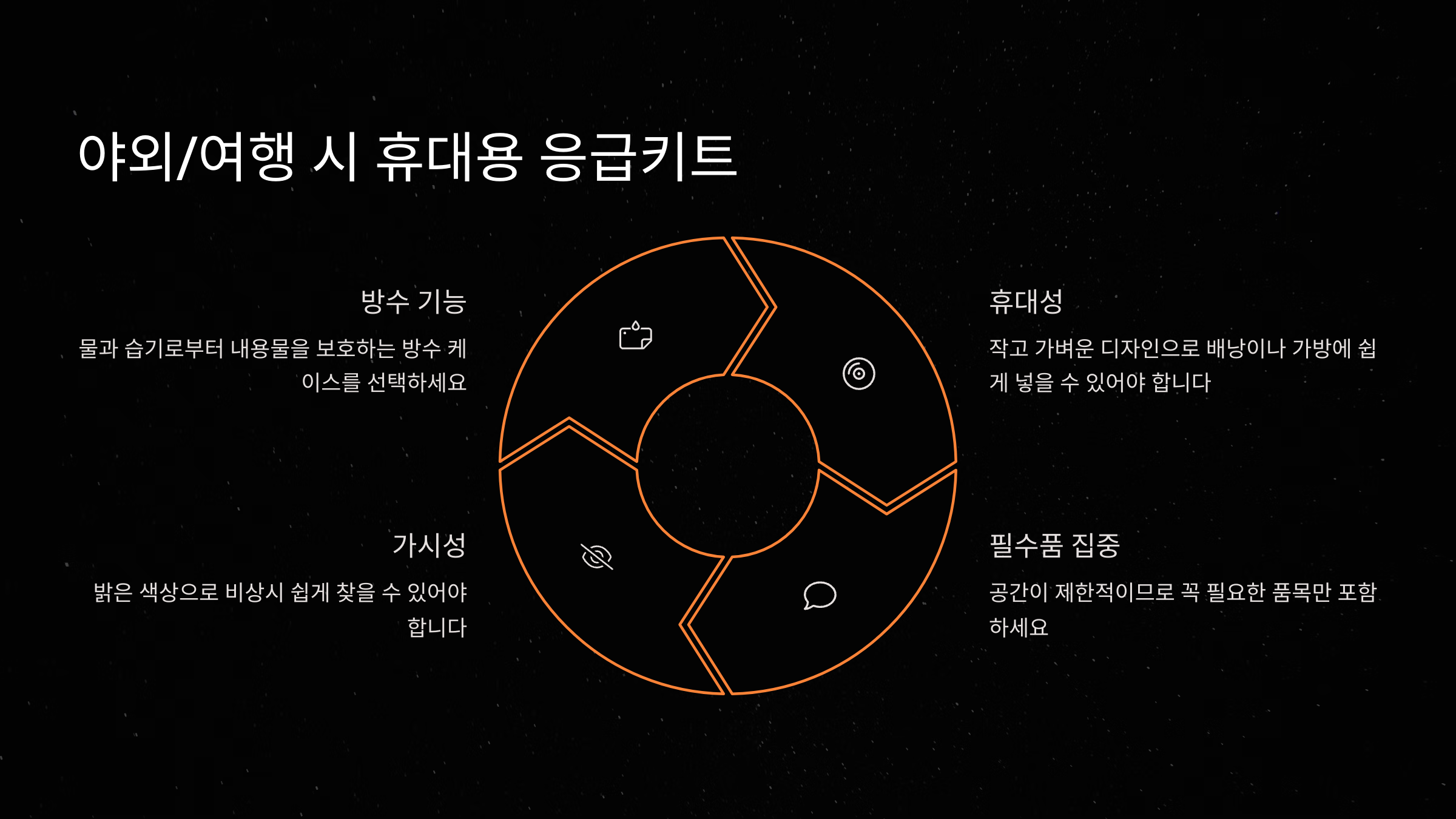 이제 본격적으로 어떤 구성품이 들어가야 하는지, 집에서는 어떤 걸 챙기면 좋은지, 외출 시 어떤 휴대용 팁이 있는지 하나씩 살펴볼게요! 다음 섹션으로 바로 이어집니다. 🚑