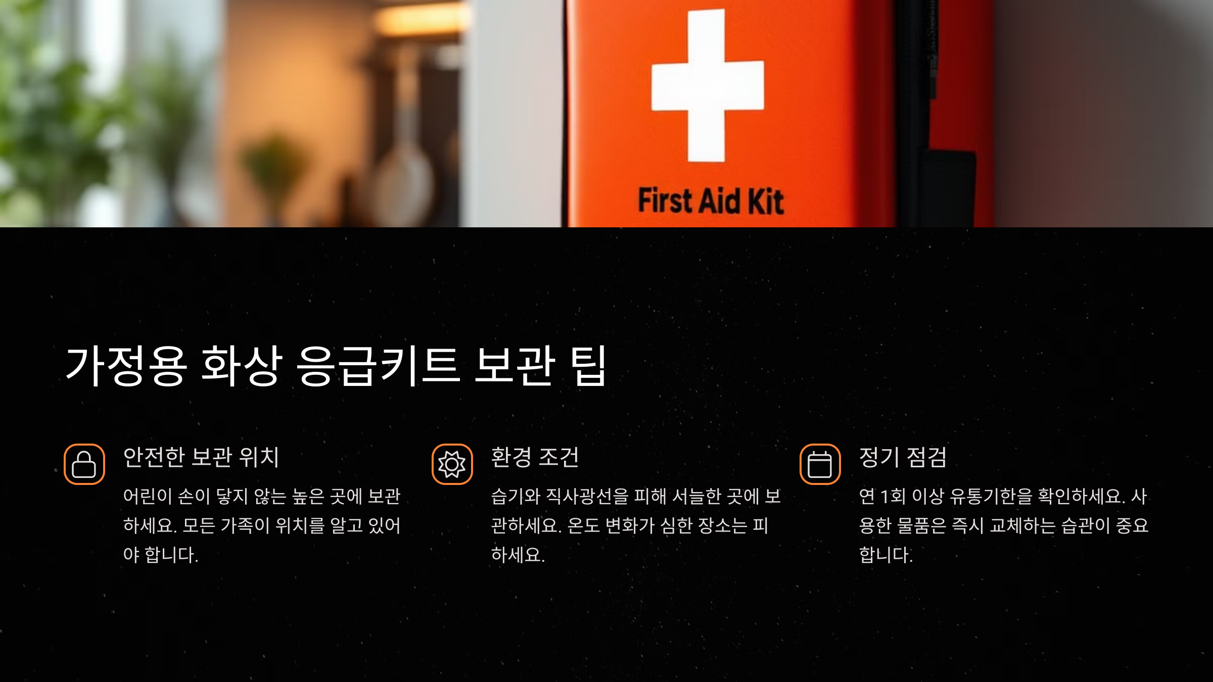 이제 본격적으로 어떤 구성품이 들어가야 하는지, 집에서는 어떤 걸 챙기면 좋은지, 외출 시 어떤 휴대용 팁이 있는지 하나씩 살펴볼게요! 다음 섹션으로 바로 이어집니다. 🚑