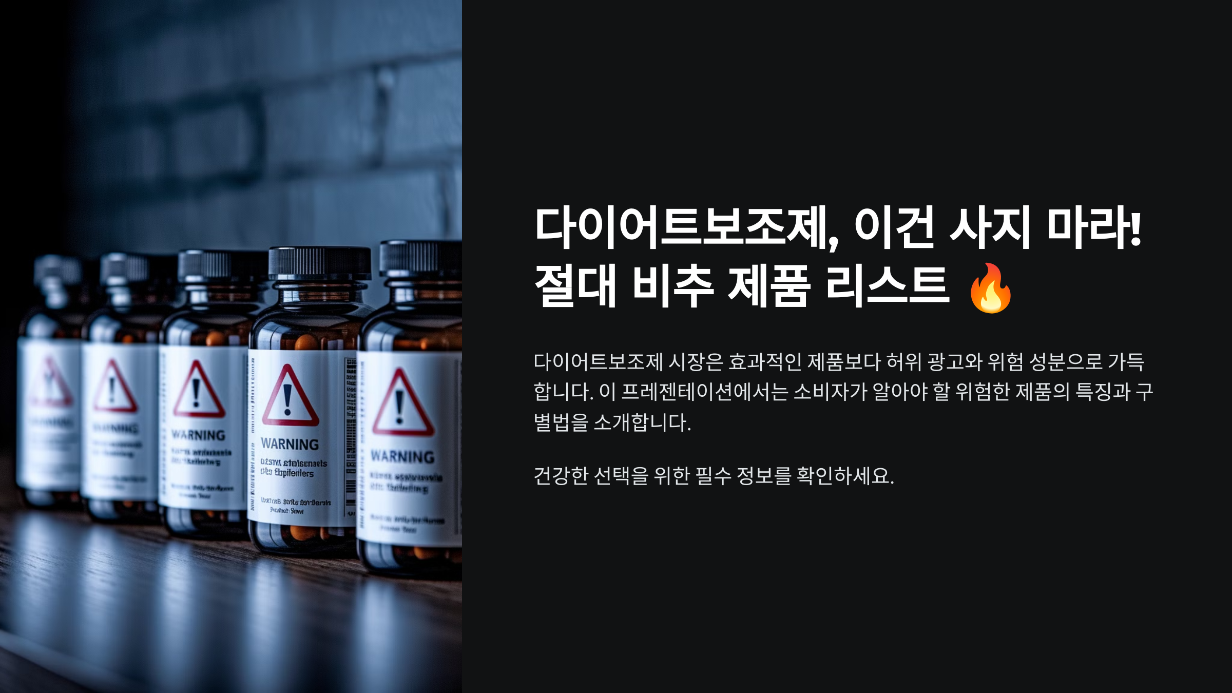 다이어트보조제 중에는 건강에 심각한 문제를 일으킬 수 있는 제품들도 많아요. 특히 식욕억제제나 강력한 성분이 들어간 제품은 부작용이 심할 수 있어요. 🚨