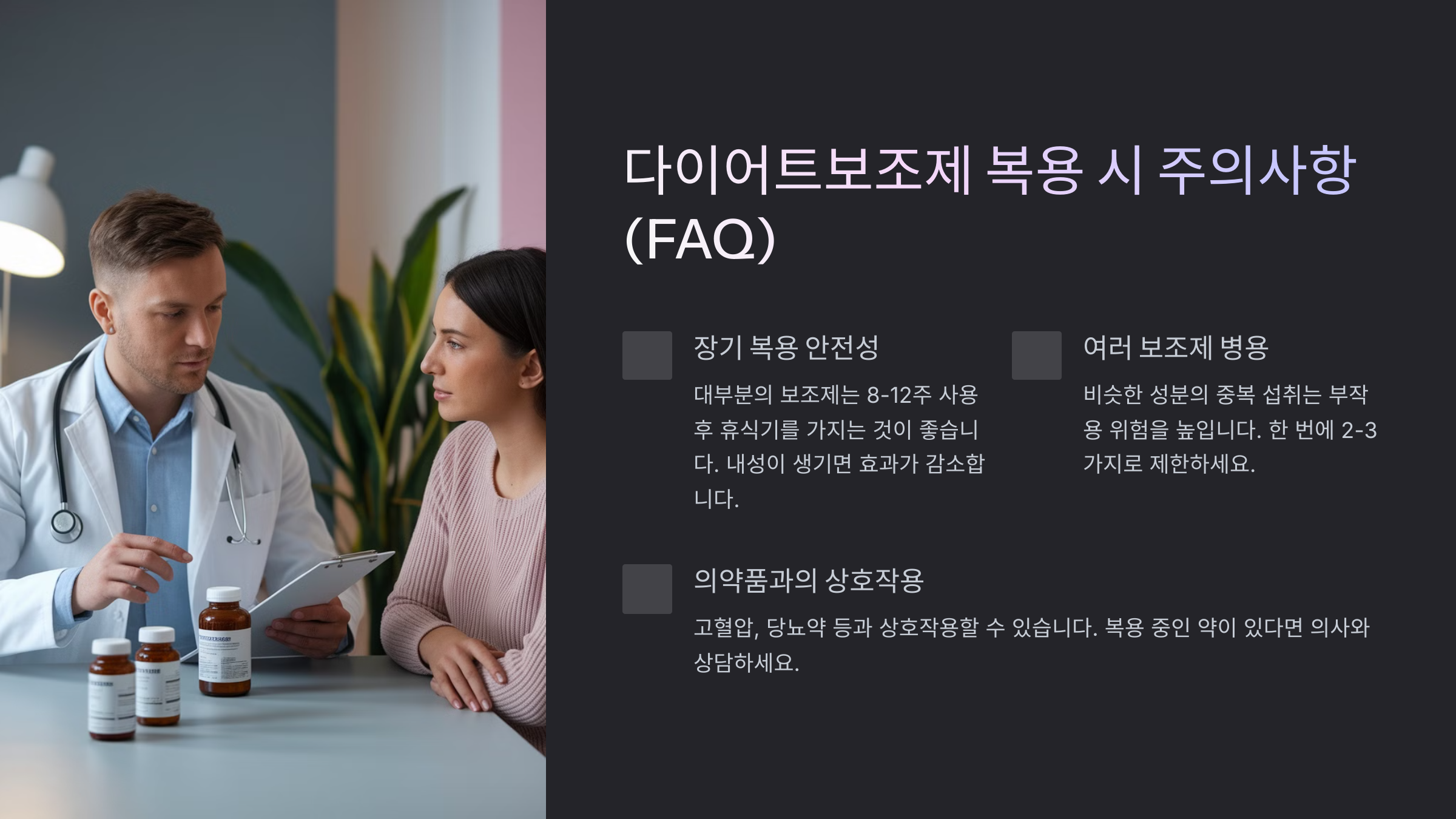 🟢 다이어트보조제 복용 시 주의할 점 (FAQ)