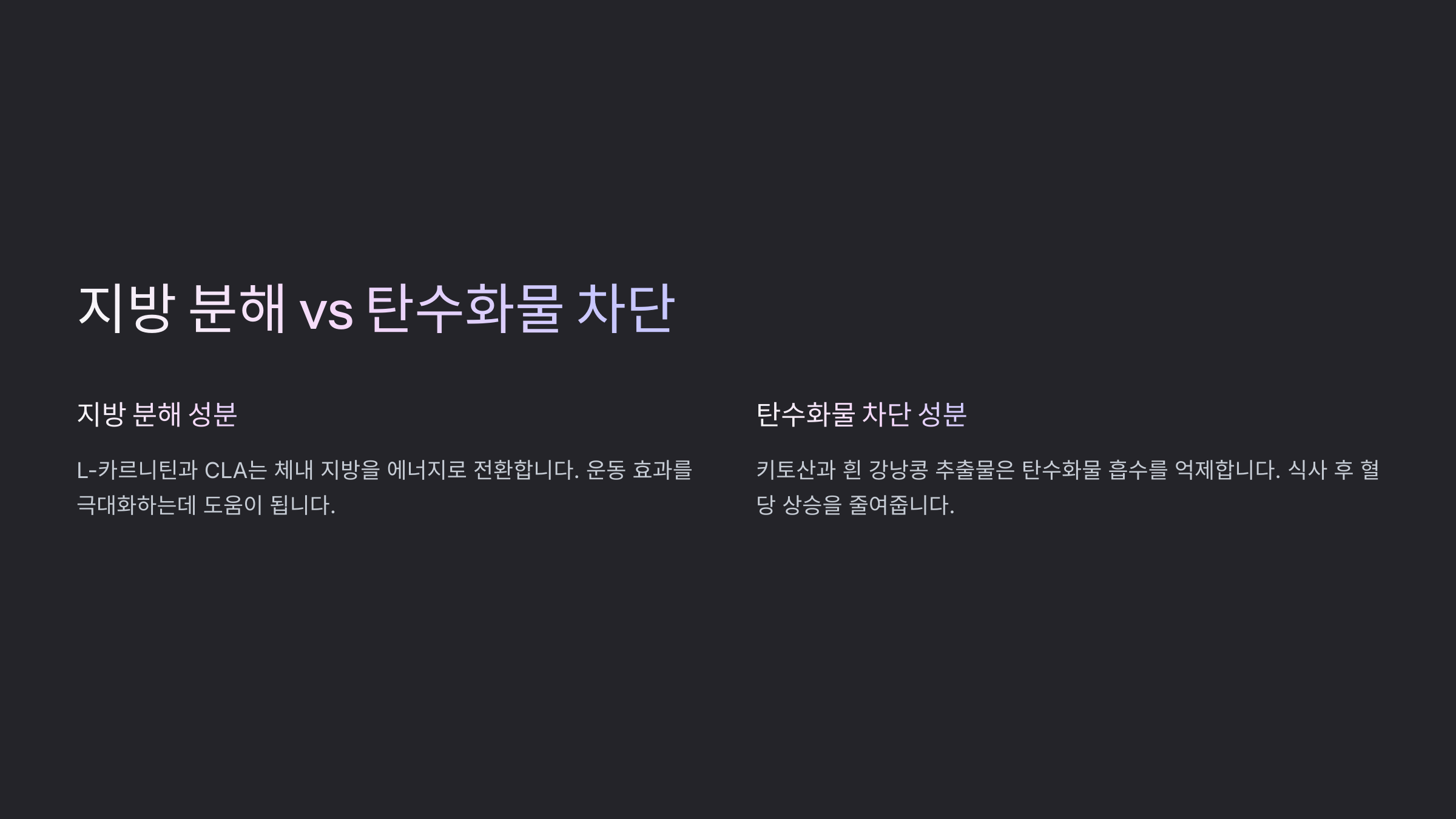 ⚖️ 지방 분해 vs 탄수화물 차단 비교표 🔍