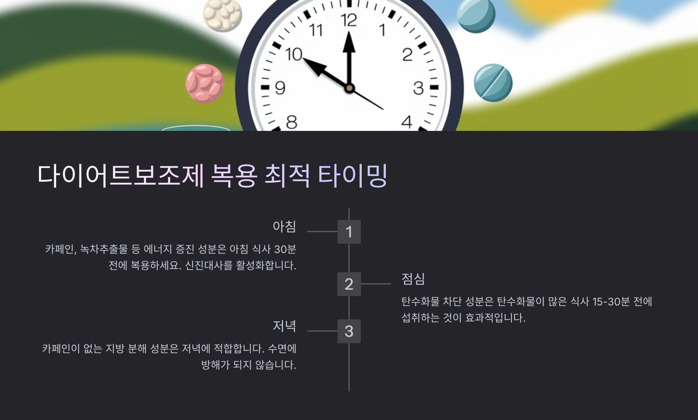 ⏰ 다이어트보조제 섭취 타이밍 가이드 🏃♀️