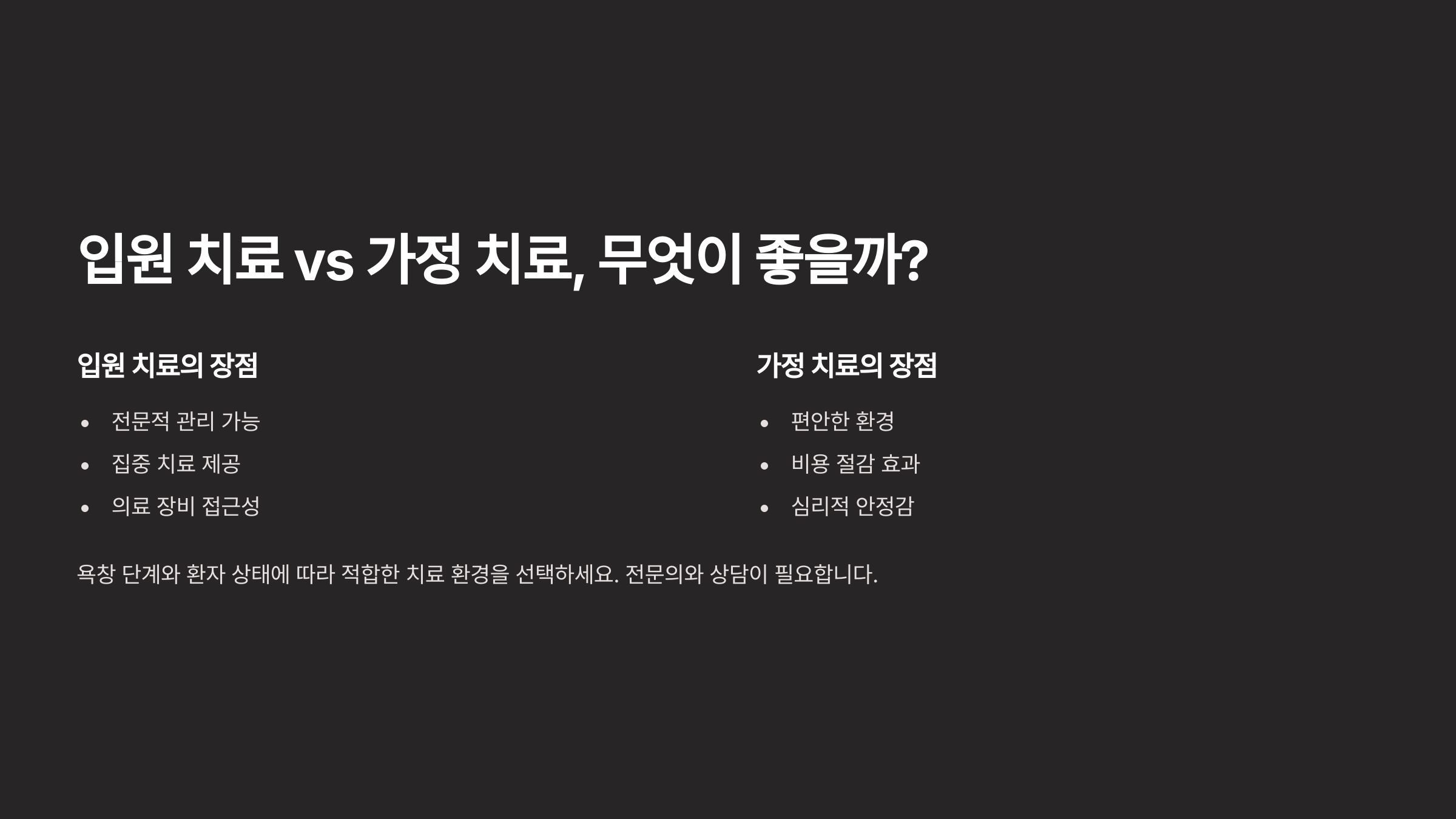 🏥 입원 치료 vs 가정 치료, 무엇이 좋을까?