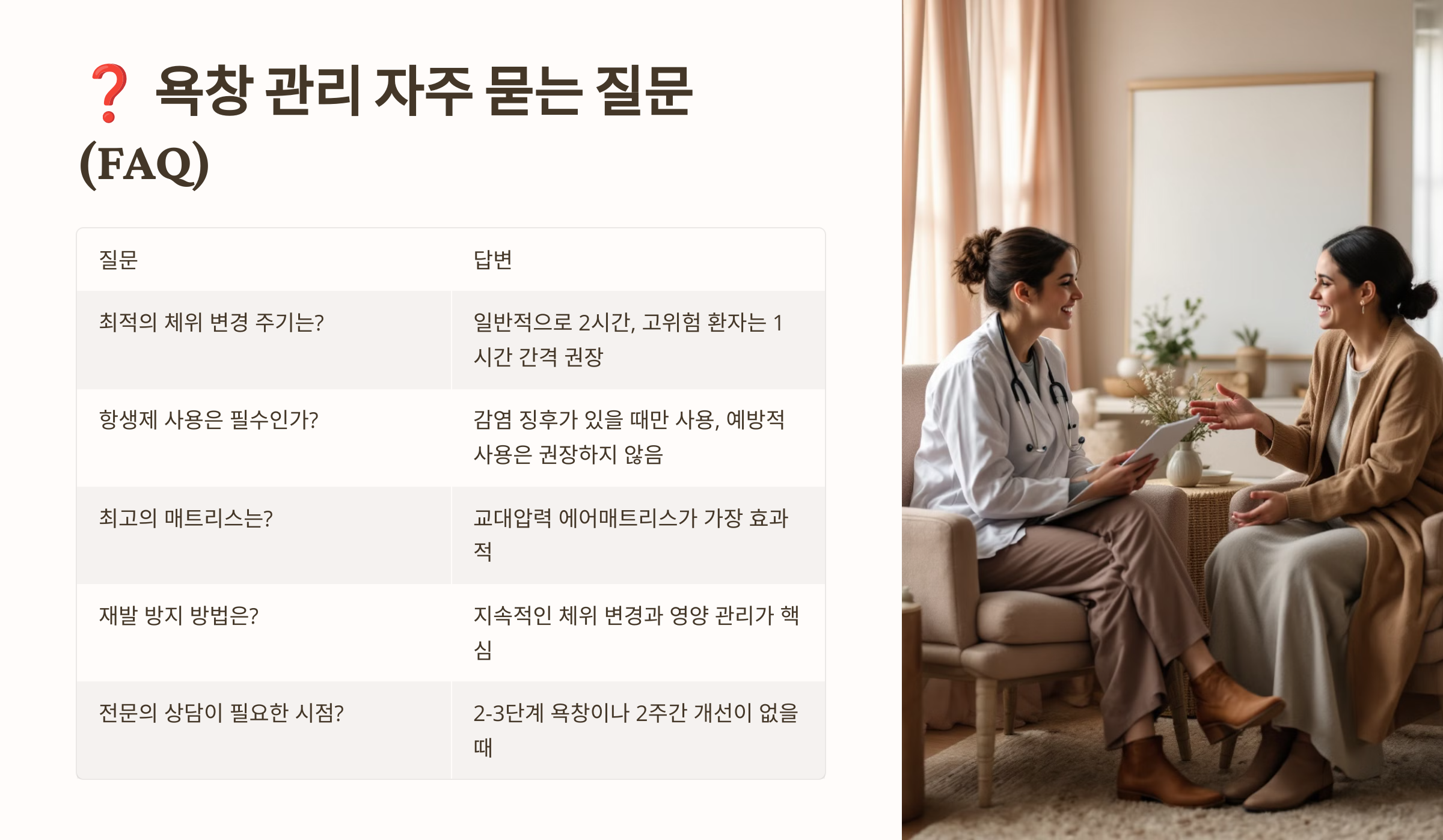이제 ❓ 욕창 관리 자주 묻는 질문 (FAQ)을 확인해볼까요? 💬