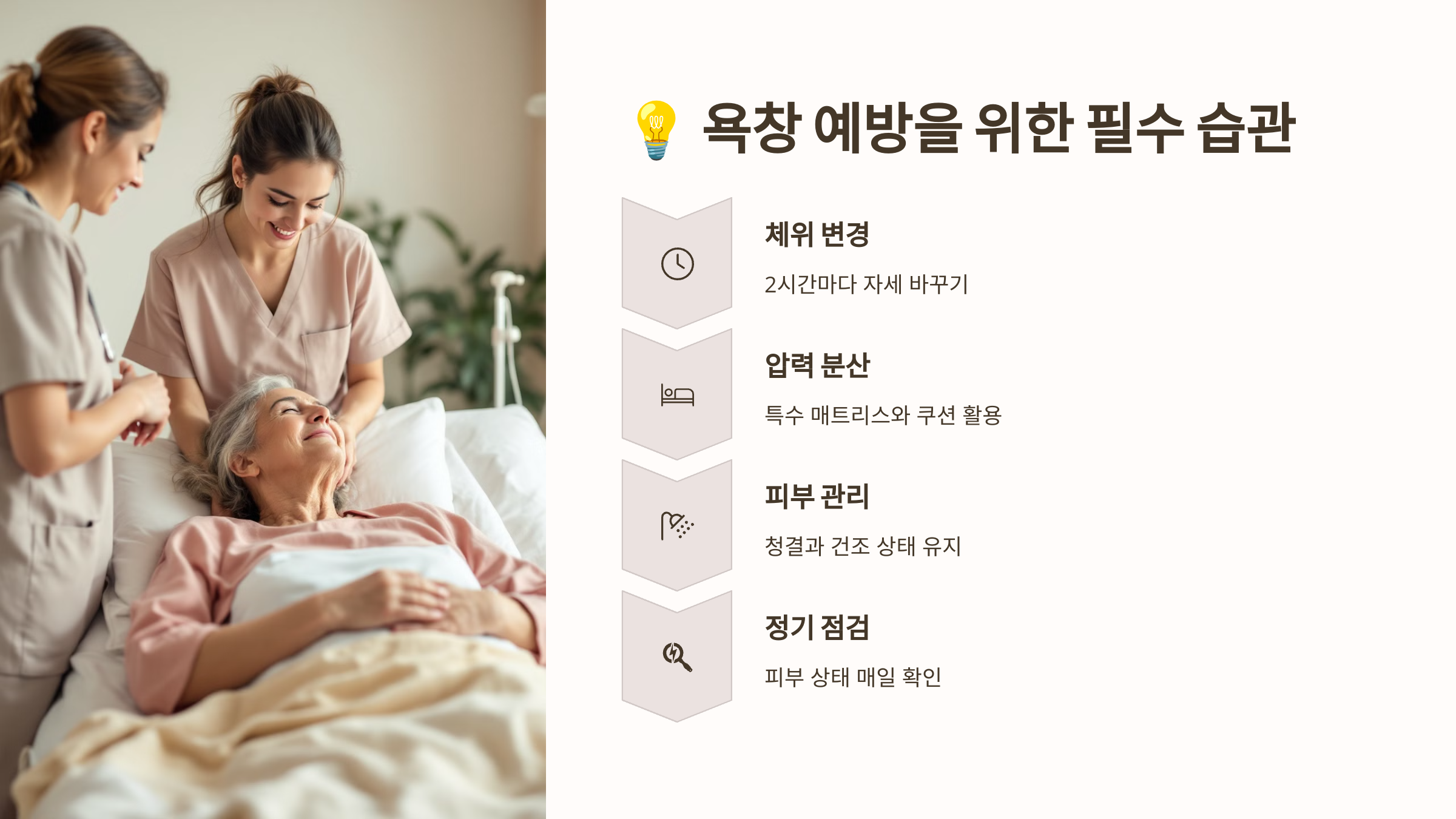 욕창을 예방하려면 올바른 자세 유지와 꾸준한 피부 관리가 필수예요. 예방 습관을 잘 실천하면 욕창 발생 위험을 크게 줄일 수 있답니다.
