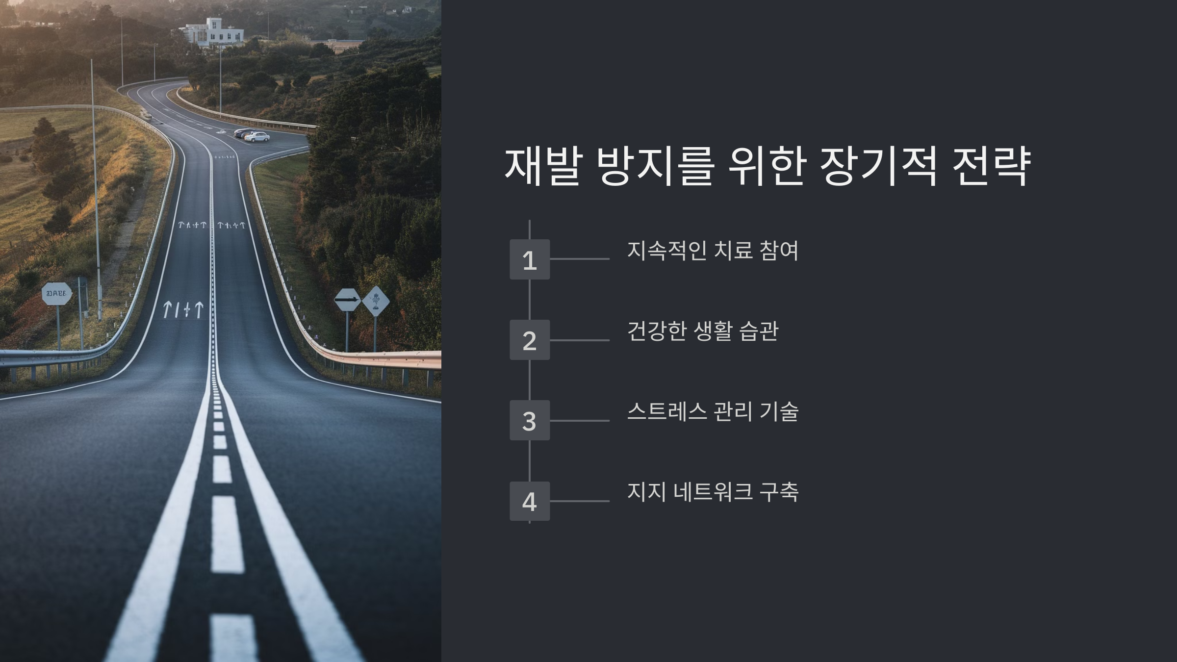재발은 **실패가 아니라 회복 과정의 일부**예요. 중요한 건 다시 시작하는 용기와 지속적인 관리랍니다. 💪 그렇다면 재발을 막기 위해 어떤 전략을 세울 수 있을까요?