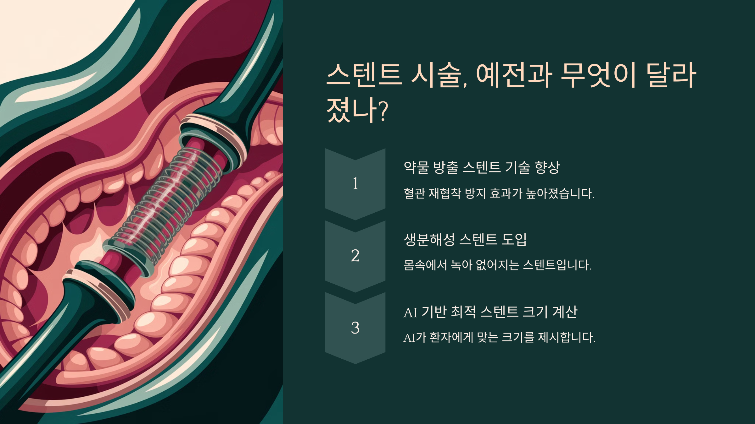 이어서 협심증 치료에서 중요한 변화 중 하나인 스텐트 시술의 발전에 대해 알아볼게요! 🚀