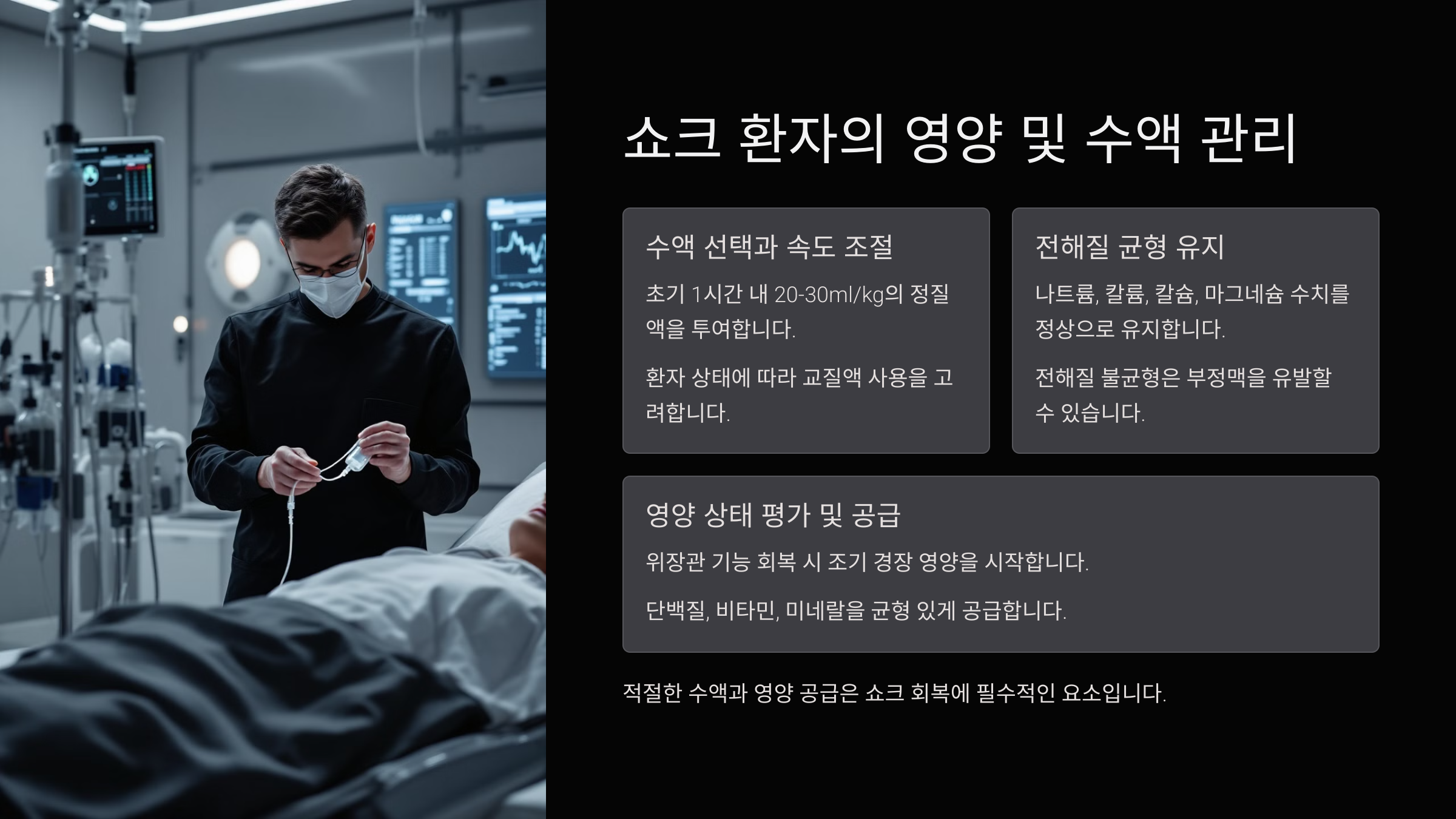 🥤 쇼크 환자의 영양 및 수액 관리