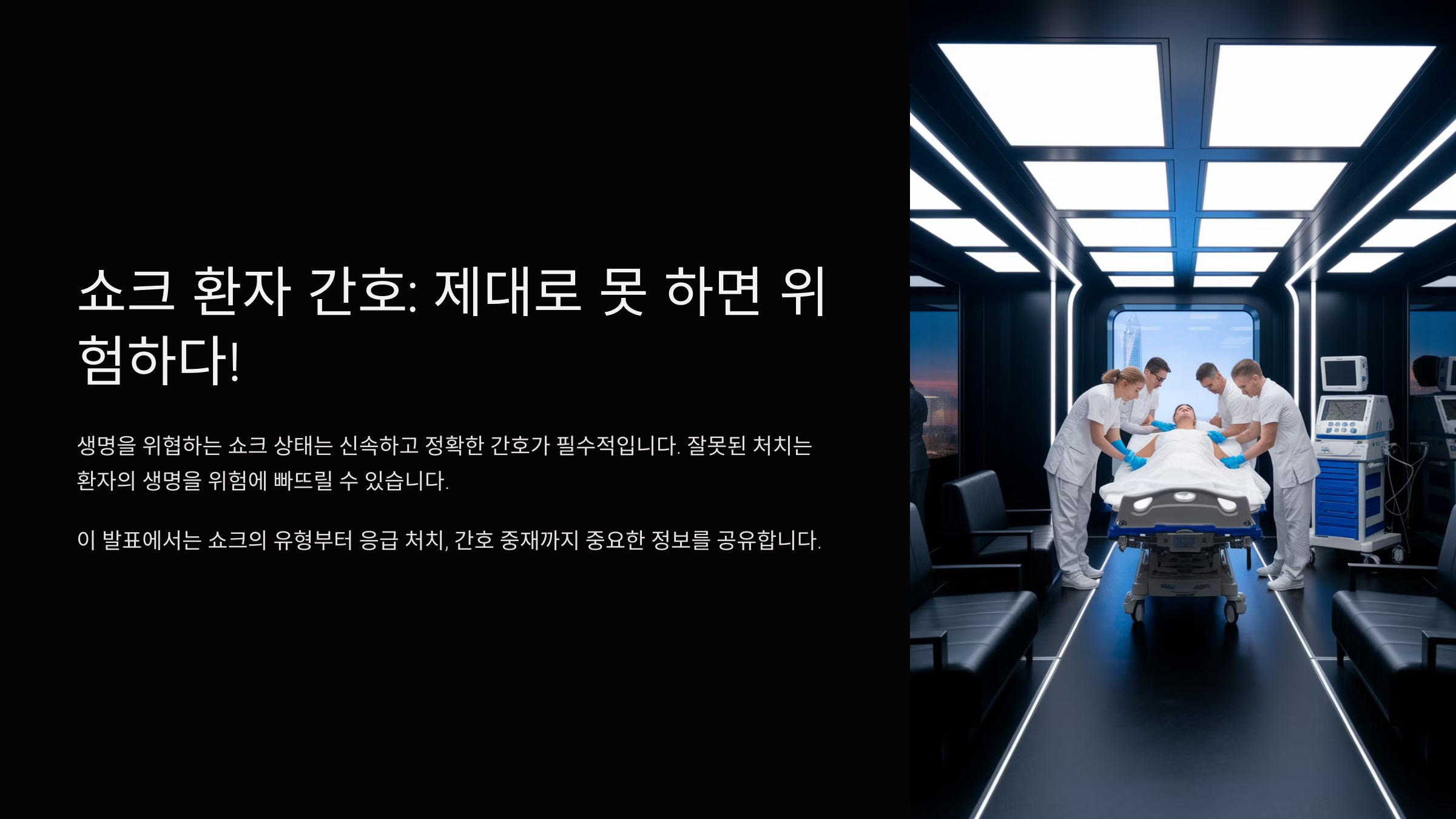 쇼크 발생 시 환자의 생명을 구하기 위해 신속한 대처가 필요해요. 하지만 응급 처치만으로는 충분하지 않기 때문에 이후 적절한 간호가 필수적이에요. 이제 쇼크 환자의 주요 간호 중재 방법을 알아볼까요?