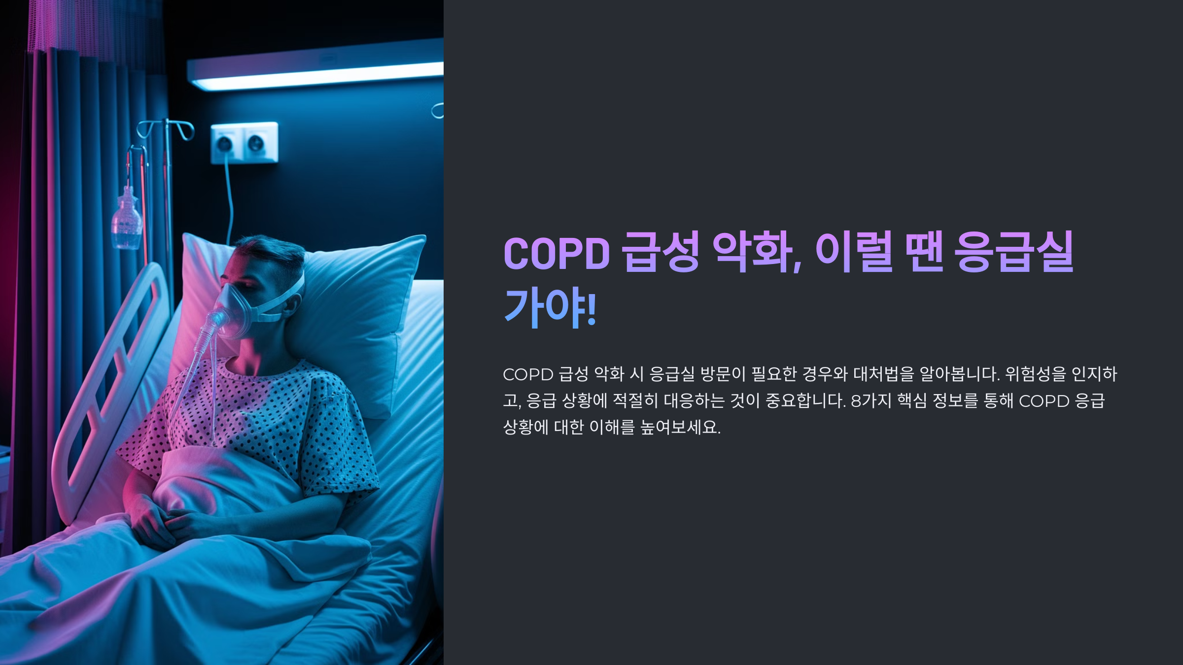 COPD 환자라면 급성 악화가 발생했을 때 병원에 가야 할지 고민될 수 있어요. 하지만 일부 증상은 응급실 방문이 꼭 필요하므로 명확한 기준을 알아두는 것이 중요해요.