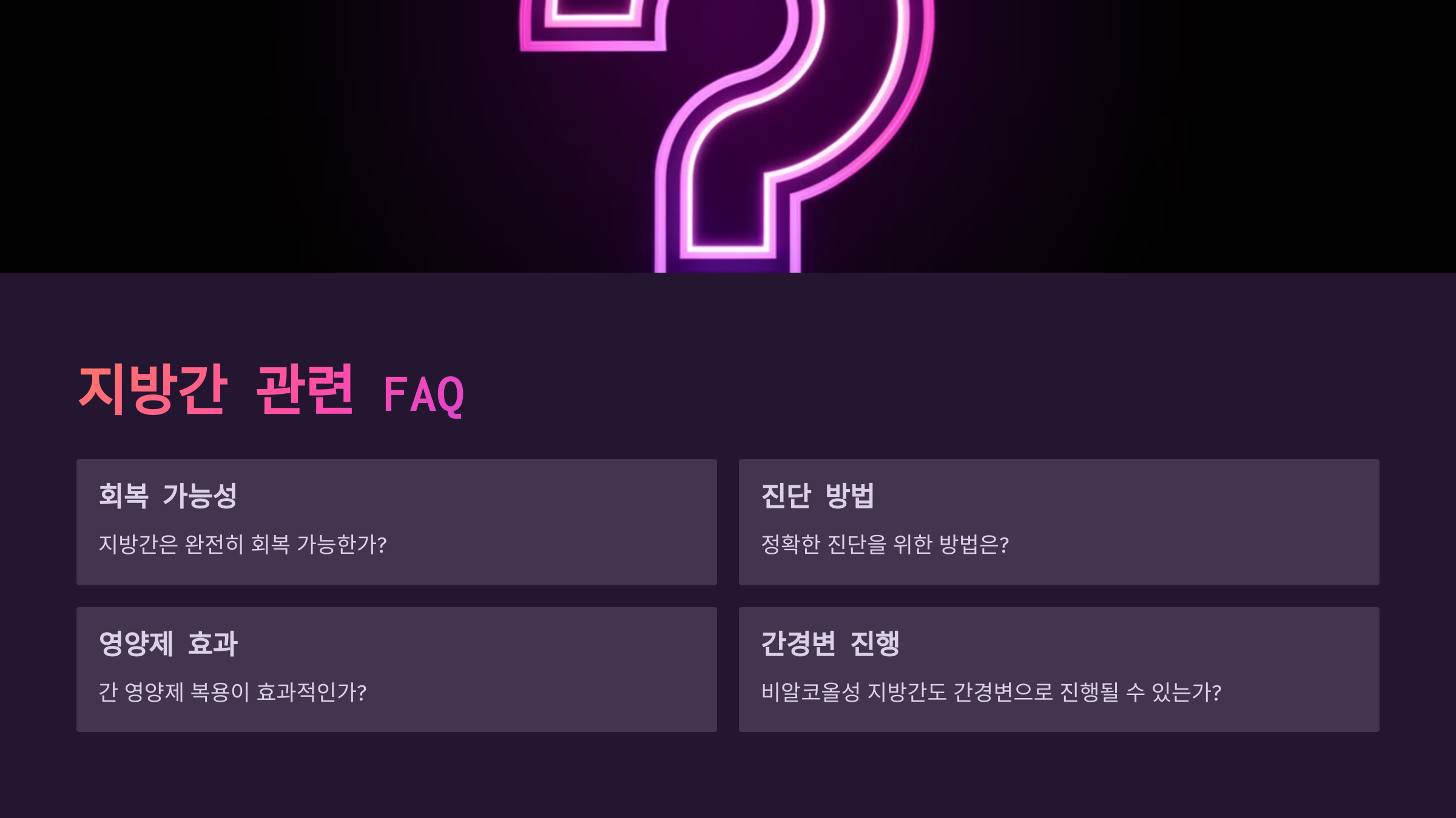 A4. 지방간이 악화되면 지방간염, 간경변, 간암까지 진행될 수 있어요. 특히 당뇨, 고혈압 같은 대사 질환과도 연관이 있기 때문에 철저한 관리가 필요해요. ⚠️